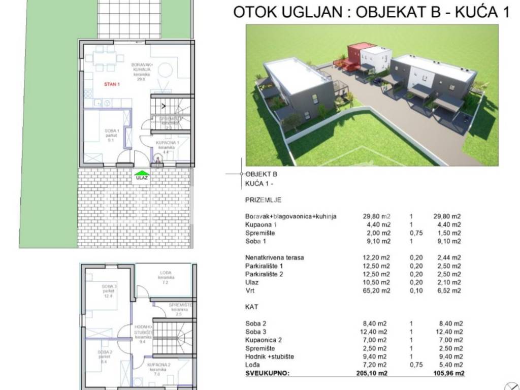 Ekskluzivna luksuzna kuća u nizu, smještena na idealnoj lokaciji u mjestu Ugljan cca. 90 metara od mora i plaže s pogledom na iste. Jedan objekt s 2 kuće u nizu. Na istoj parceli predviđena su još 2 objekta od po 3 kuće u nizu. Ovo je objekt B s dvije kuće, kuća 2. Vlastiti vrt i parkiralište za 2 automobila. Energetski certifikat A, koji garantira vrhunsku energetsku učinkovitost i uštedu energije, Prozori od PVC-a s troslojnim staklima i komarnicima, osiguravajući toplinsku i zvučnu izolaciju, Vrhunski moderni parketi u dnevnim i spavaćim prostorijama. Keramika i sanitarije renomiranih proizvođača, koje jamče eleganciju, trajnost i lako održavanje. Dodatan luksuz može se krojiti prema Vašim željama. projekt predviđa mogućnost gradnje privatnih bazena u sklopu nekih kuća ili gradnja zajedničkog bazena. Kupci imaju priliku realizirati opciju gradnje bazena prema vlastitim željama. Plan dovršetka 5. mjesec 2026. Moguća prodaja cijelog projekta.
