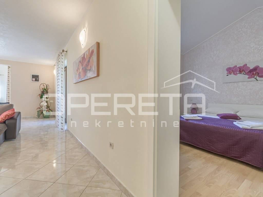 The house, with a surface area of 140m2, consists of a spacious living room, three comfortable bedrooms, and two modern bathrooms. It features a fully equipped kitchen and access to a beautiful terrace and sun deck, offering stunning views and a perfect place to enjoy.
