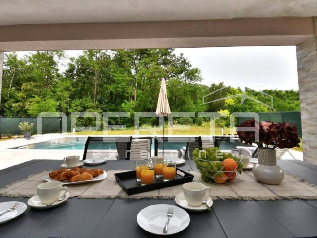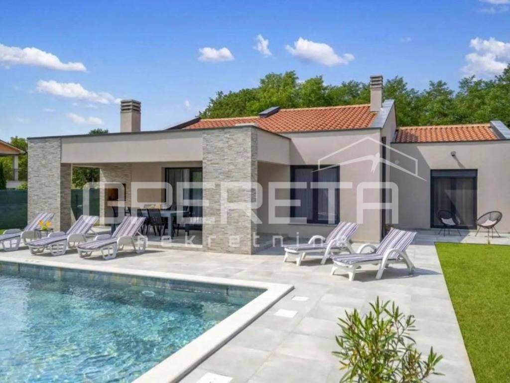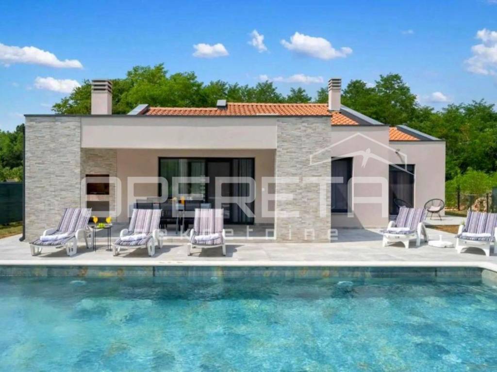In a quiet location, just a few minutes drive from the center of Labin, a new single-storey house with a swimming pool of 130 m2 is for sale.