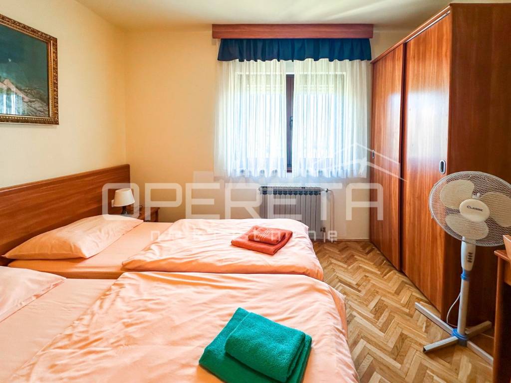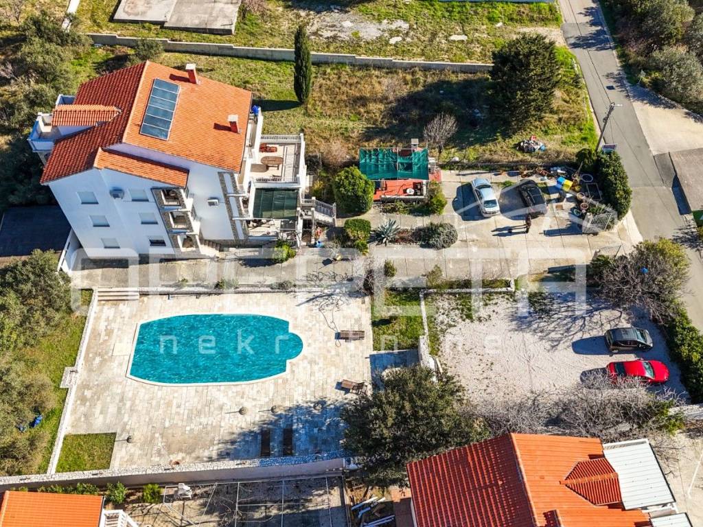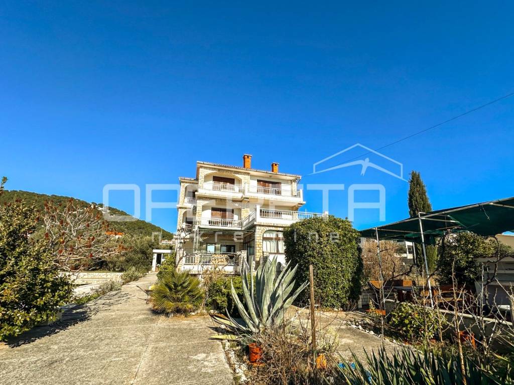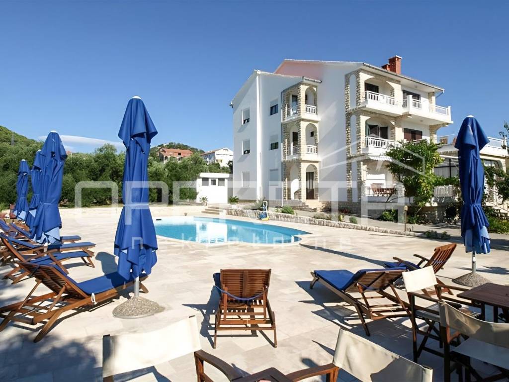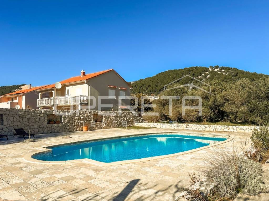 In Barbat, just 100 meters from the sea, lies a spacious apartment house with a swimming pool and an even more expansive plot of land.