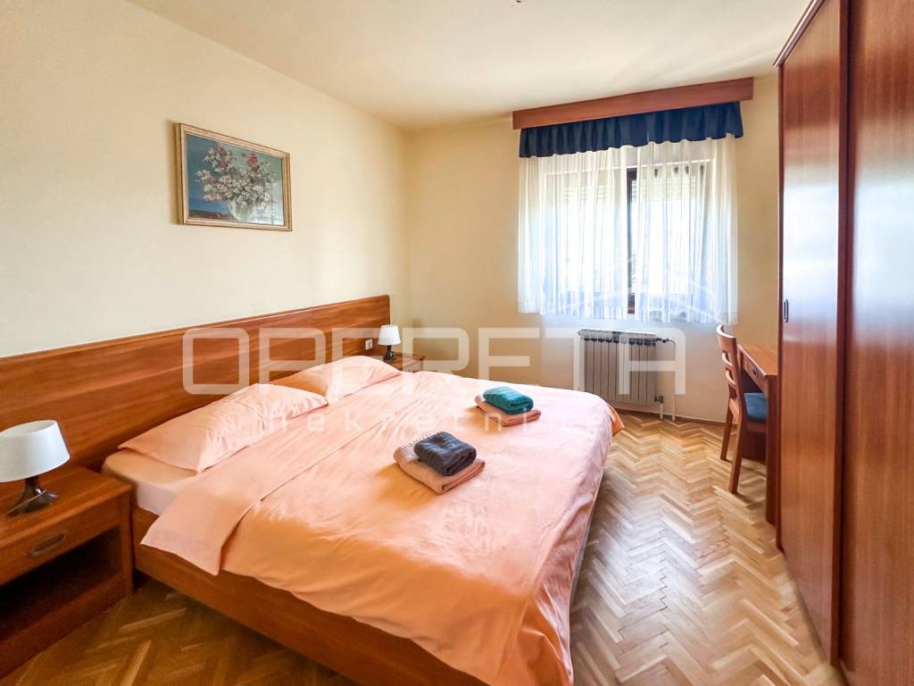 On the ground floor, there is a two-bedroom apartment of approximately 100 m with a kitchen, living room, dining area, two bedrooms, a bathroom, and a large terrace. The rear part of the ground floor includes two separate bedrooms, each with its own bathroom and private entrance.