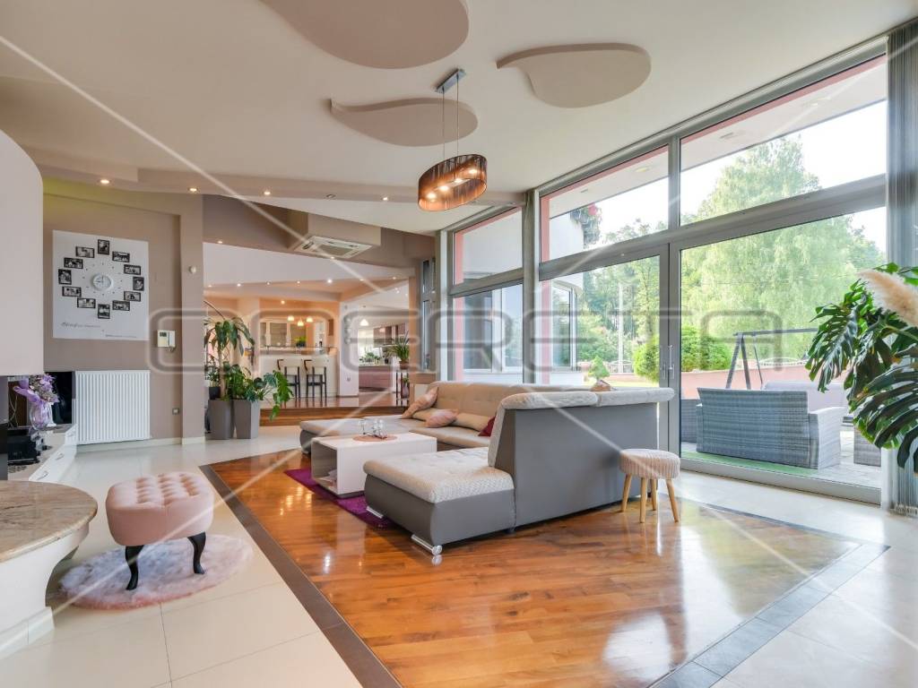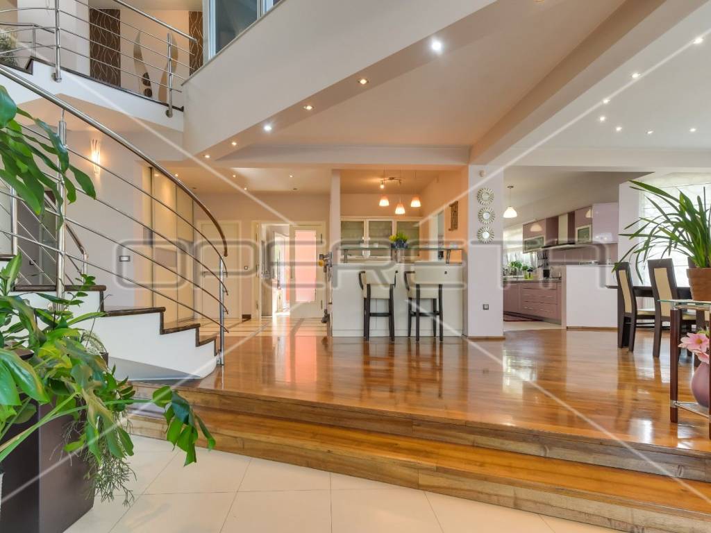 Jedinstvena kuća/vila u blizini centra Donje Stubice, na ravnoj parceli od 2.377 m2 koja pruža mir i privatnost. Prostrana, s orjentacijom I-Z-S-J, luksuzno uređena i opremljena, proteže se na 2 etaže. Prizemljem se prostiru prostrani "open space" dnevni boravak s kuhinjom i blagovaonicom, kupaonica, zaseban wc, izba, predsoblje, tehnička prostorija, ulazni hodnik i trijem. Na katu se nalazi "master" spavaća soba s pripadajućom kupaonicom i wc-om, 3 spavaće/radne sobe, kupaonica s wc-om, galerijski predprostor i terasa. U garaži mjesta za 2 automobila + 10 parkirnih mjesta u dvorištu. Oaza luksuza i mira s prednostima života u prirodi i blizine svih sadržaja potrebnih za kvalitetan život. 40 min vožnje do Zagreba. Preporuka!