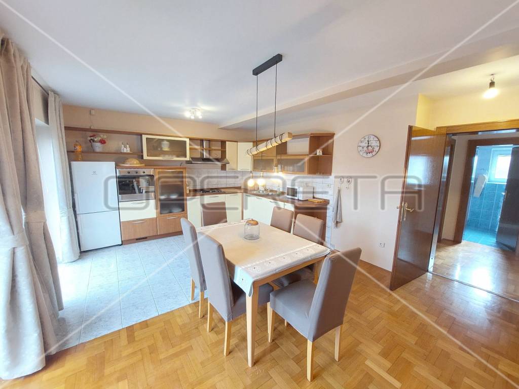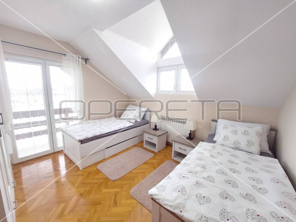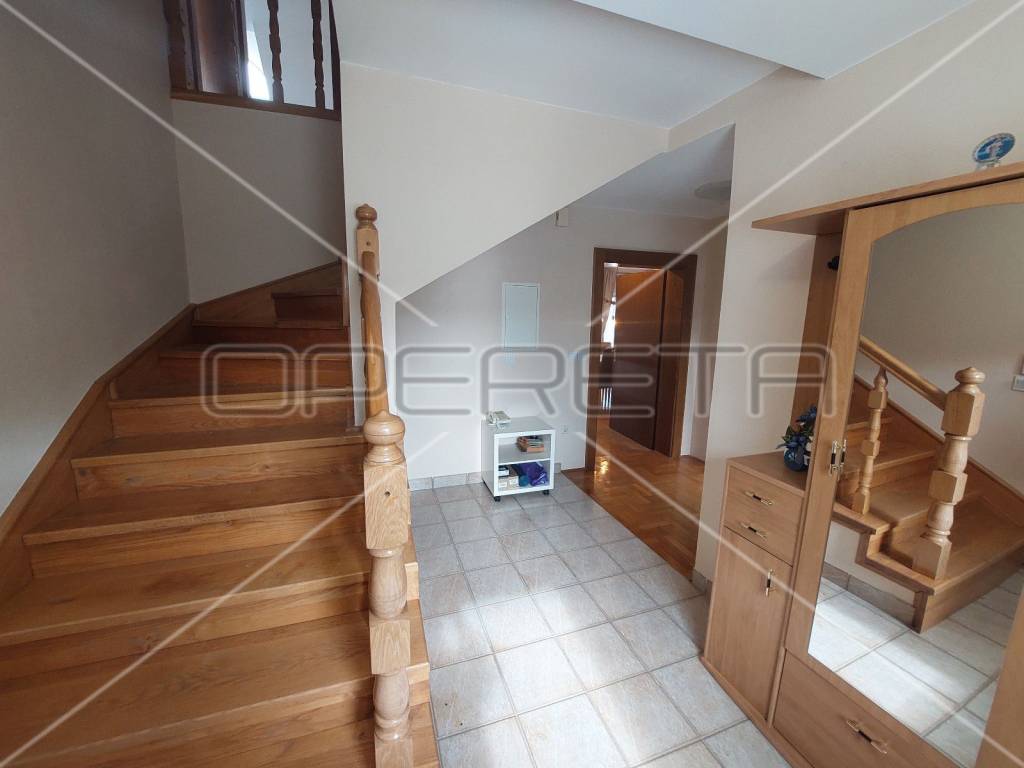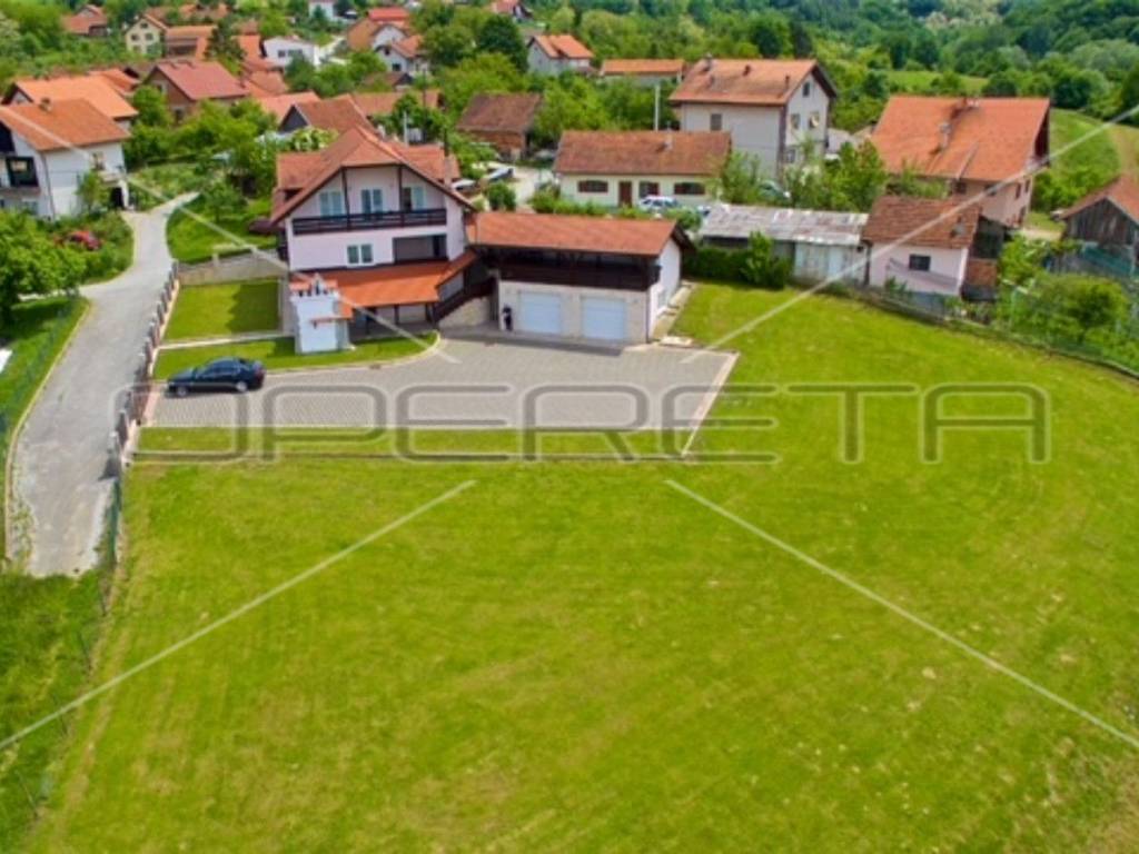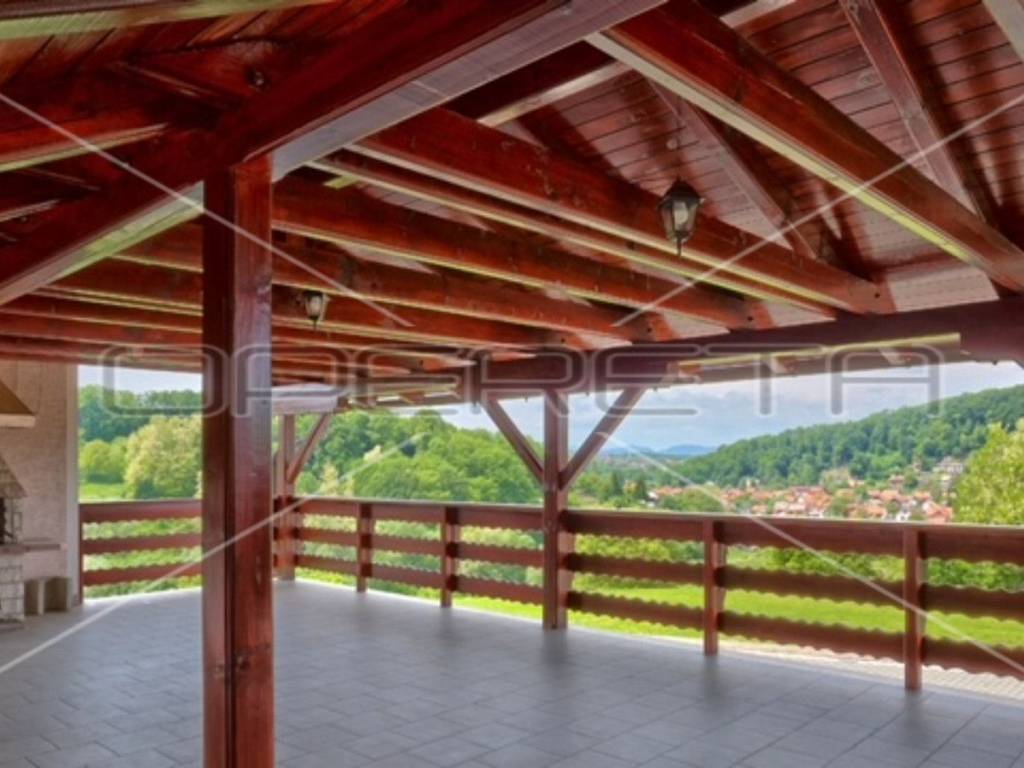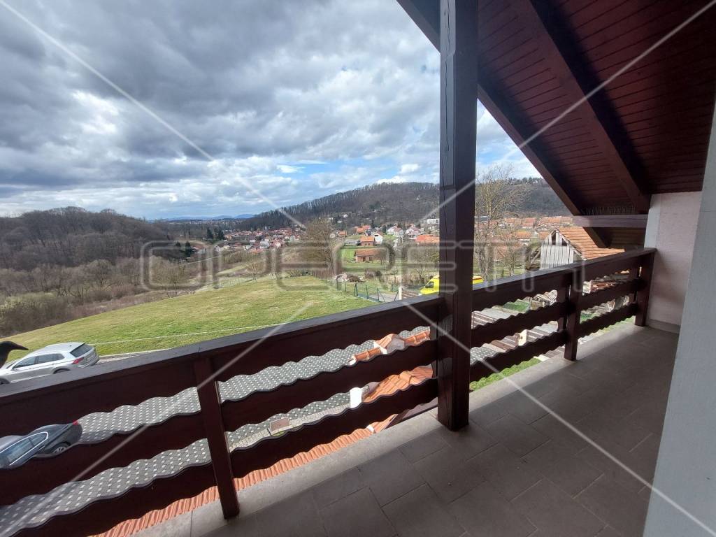 PRODAJA, KUĆA, Donja Stubica. Raskošna kuća na proplanku, prodaje se potpuno opremljena i odlična je prilika za kvalitetan život ili turistički najam. Proteže se na 3 etaže: u prizemlju se nalazi prostorija za druženje na 52m2 s wc-om i izlazom na terasu na kojoj je kamin. Tu je također kotlovnica i dupla garaža. Na 1. katu je open space dnevni boravak s blagovaonicom i kuhinjom, jedna soba, kupaonica s tuš kabinom i wc-om i 124 m2 natkrivene terase. Na 2. katu je 5 soba i kupaonica s kutnom kadom i wc-om, a sobe imaju izlaze na balkone. Prekrasna priroda podno Medvednice, kući pripada voćnjak, dvorište i pomoćni objekt. Na minutu od Termi Jezerčica i Stubičkih toplica, nešto više od pola sata od Zagreba.