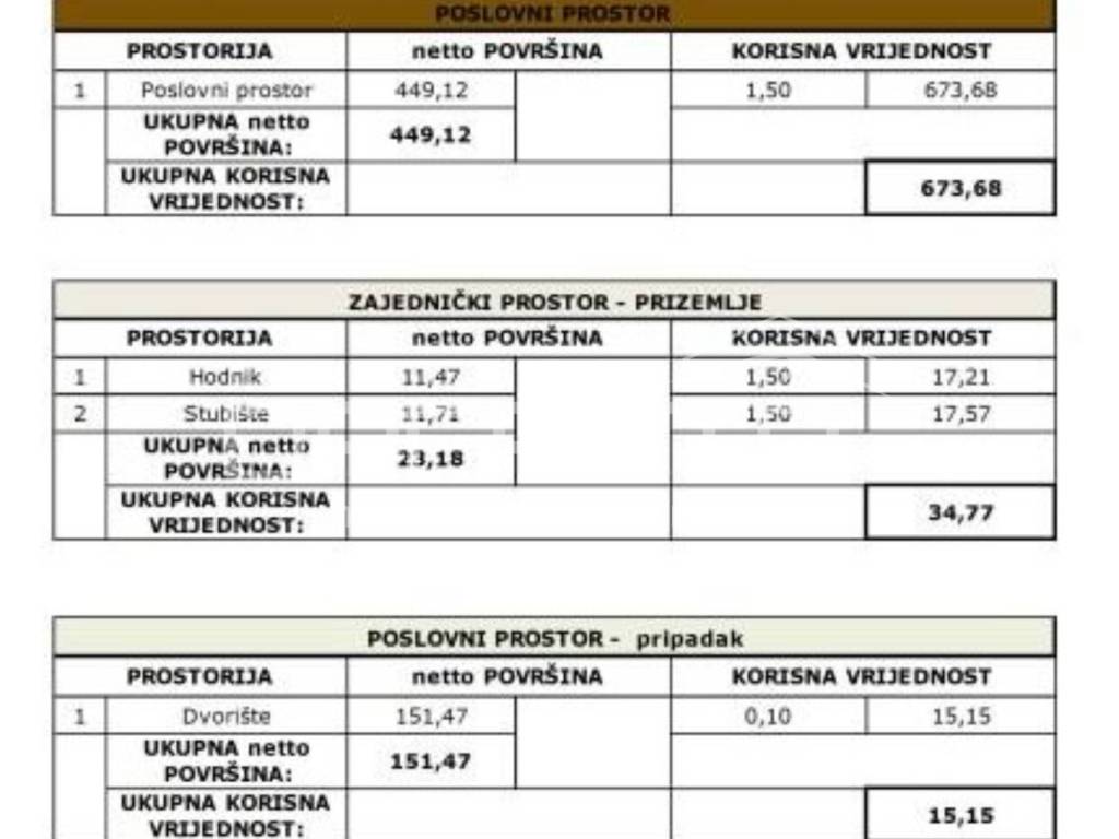 PRODAJA, POSLOVNI PROSTOR, JANKOMIR, UL. VELIMIRA ŠKORPIKA, NOVOGRADNJA, 464,27 m2 podne površine - (visina stropa 4,15m2 - ukupno korisne površine 673,68 m2). Prodaje se poslovni prostor u prizemlju novoizgrađene stambeno-poslovne zgrade na odličnoj lokaciji u blizini Samoborske ulice i ul. Velimira Škorpika. Prostor ima odličnu vidljivost sa prometnice jer je cijelom dužinom ostakljen velikim staklenim stijenama, stolarija je aluminijska. Radi visine prostora (4,15m) i malo nosivih zidova, različite mogućnosti prenamjene prostora. U cijeni je i dvorište (151,47m2) koje pripada prostoru. Ispod poslovnog prostora je garaža sa 18 parkirnih mjesta i 28 vanjskih parkirnih mjesta. Dva ulaza u poslovni prostor - Ulični ulaz u poslovni prostor i dolazak dizalom iz garaže kroz zajednički prostor (glavni ulaz u zgradu). Postoji mogućnost postavljanja loga na vrh poslovno stambene zgrade. Moguće uređenje poslovnog prostora po zahtjevima kupca.