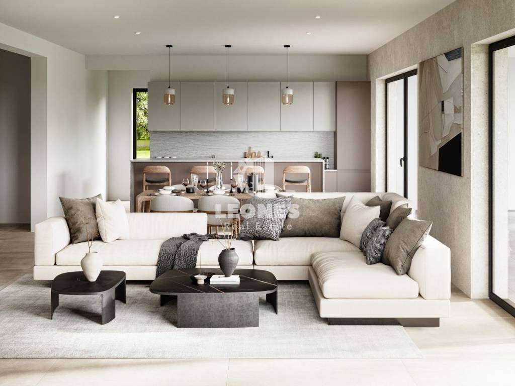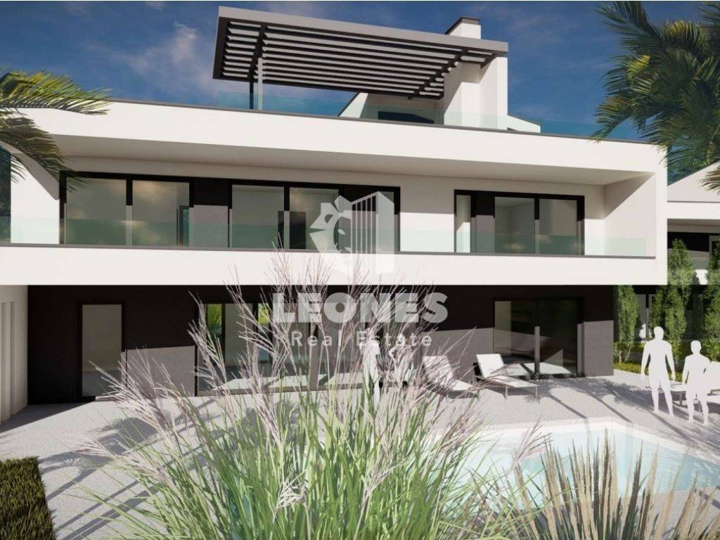 living room, while cooling is provided by air conditioners (all rooms). The carpentry is aluminum with three-layer glass, while the facade is energy-efficient, which ensures low heating and cooling costs. The villa is built with top-quality materials - 25 cm porotherm bricks, ceramics and first-class parquet floors, as well as sanitary facilities.