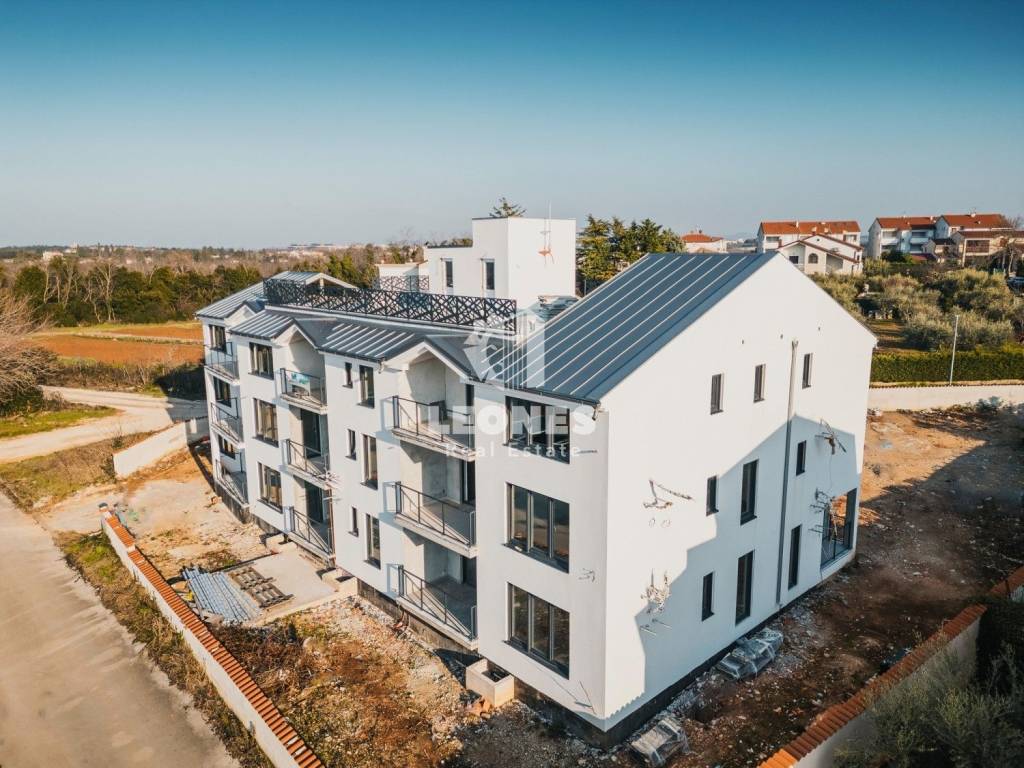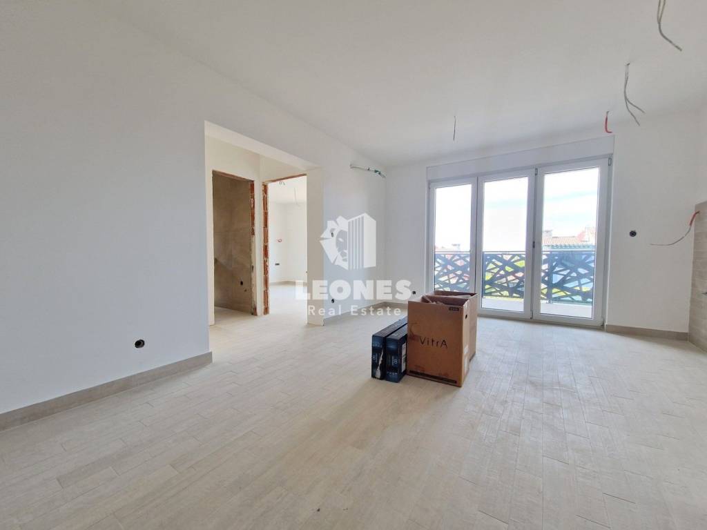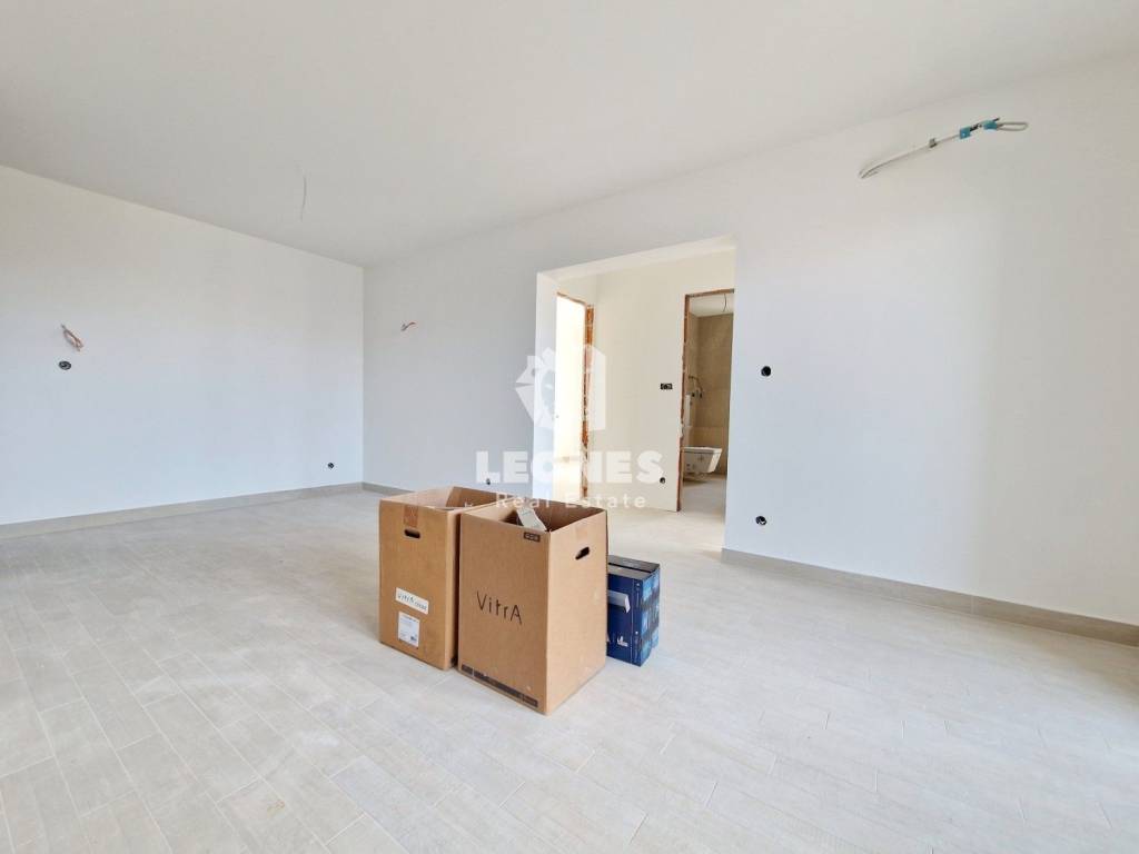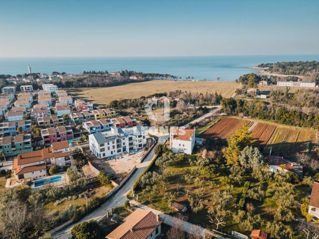 An apartment for sale with an elevator 300m from the sea in the vicinity of Umag, Bašanija. The total area of the apartment is 62 m2 and consists of 2 bedrooms, living room, kitchen, pantry, bathroom and terrace. The apartment is located on the first floor. The building consists of 14 apartments and is built with high-quality Poroterm bricks and has an elevator. The facade is energy efficient with thermal insulation 10 cm thick (styrofoam). The apartment has a storage room in the basement and one parking space.