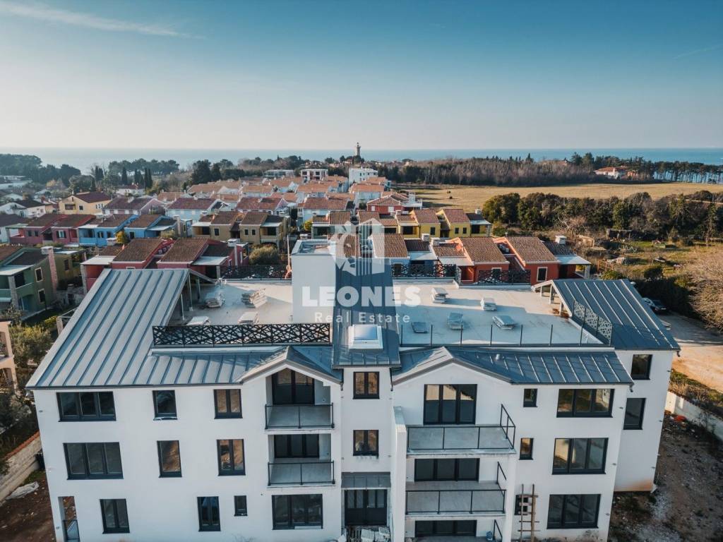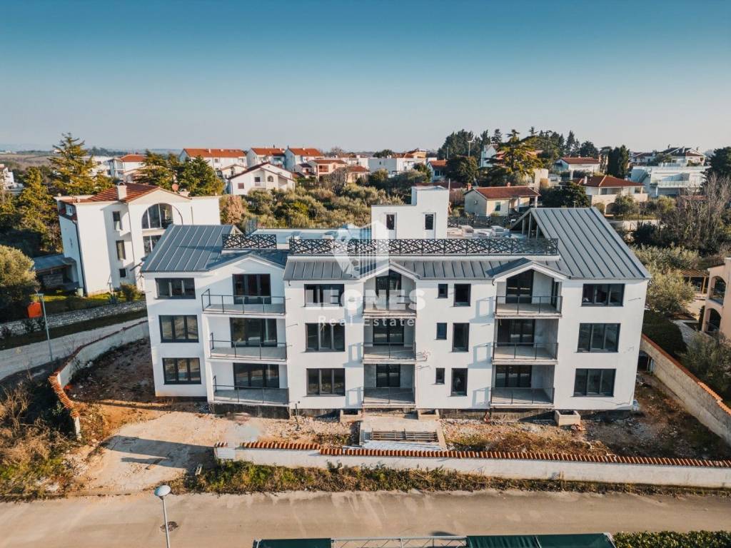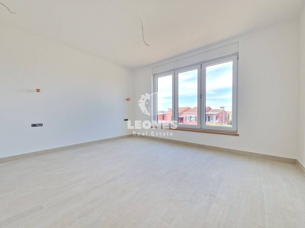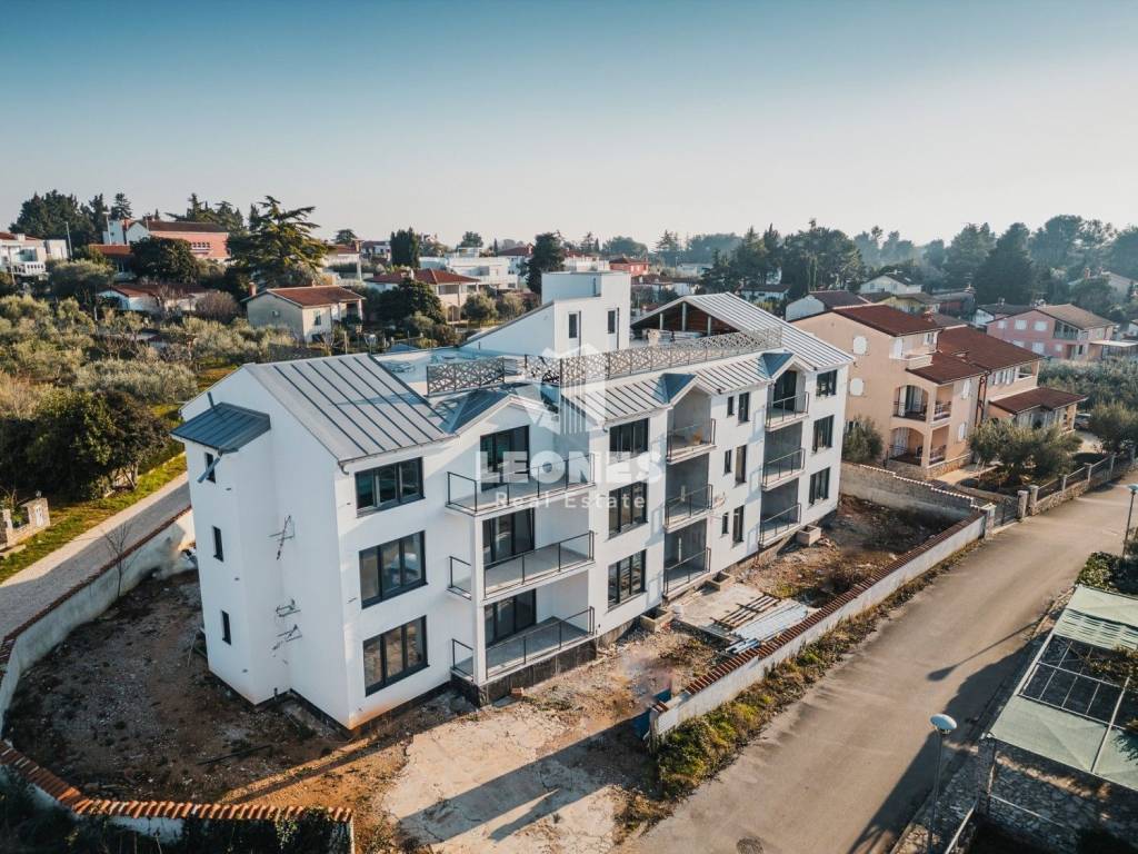 An apartment for sale with an elevator 300m from the sea in the vicinity of Umag, Bašanija. The total area of the apartment is 62 m2 and consists of 2 bedrooms, living room, kitchen, pantry, bathroom and terrace. The apartment is located on the first floor. The building consists of 14 apartments and is built with high-quality Poroterm bricks and has an elevator. The facade is energy efficient with thermal insulation 10 cm thick (styrofoam). The apartment has a storage room in the basement and one parking space.