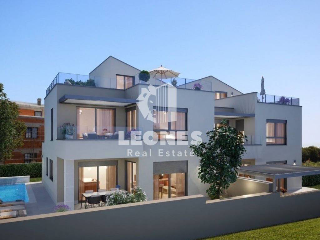 Modern semi-detached house with pool and sea view in Novigrad