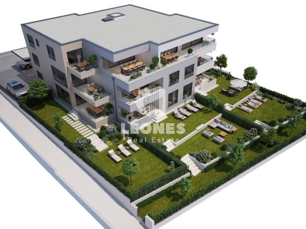 A very comfortable apartment with a garden in Novigrad is for sale. The apartment is 103 m2 and consists of an entrance hall, two spacious bedrooms, a bathroom, a toilet and a storage room located right next to the kitchen. The living room with kitchen and dining room is planned in an open space style of up to 37m2. From the living room there is access to a covered terrace of 15 m2, from which you can enter a beautifully landscaped garden of about 100 m2. It should be noted that each apartment has a storage room in the basement, and this quality building will have an elevator that extends from the basement to the 2nd floor.