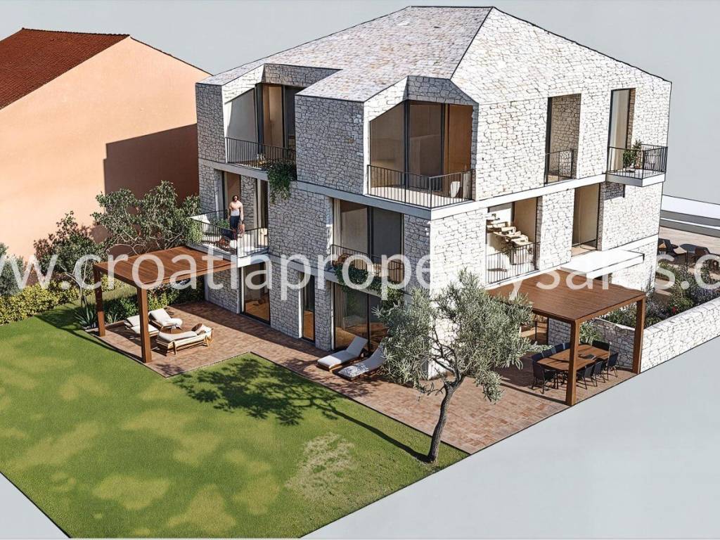 In a town not far from Trogir, 1 apartment on the first floor is still for sale. The building has a total of 6 apartments. The first floor apartment consists of two bedrooms, one bathroom and a separate wc, an open plan living, kitchen and dining area which leads out onto a semi-covered balcony of 20m2. Completion date is June 2026. The price of one apartment is 191,000 euros which will increase to 217,000 euros from the 01.01.2026 The apartments come unfurnished with 1 parking space each. Trogir is 10 minutes drive away and only 17km from Split airport. The area is peaceful with locals and lovely beaches.