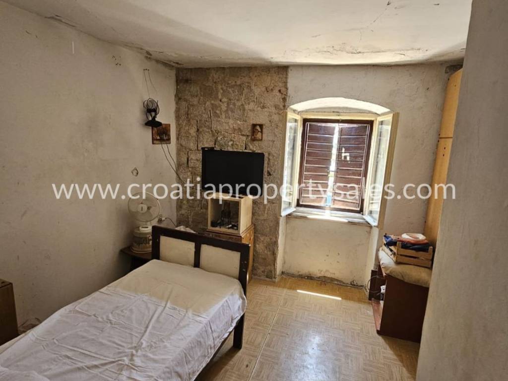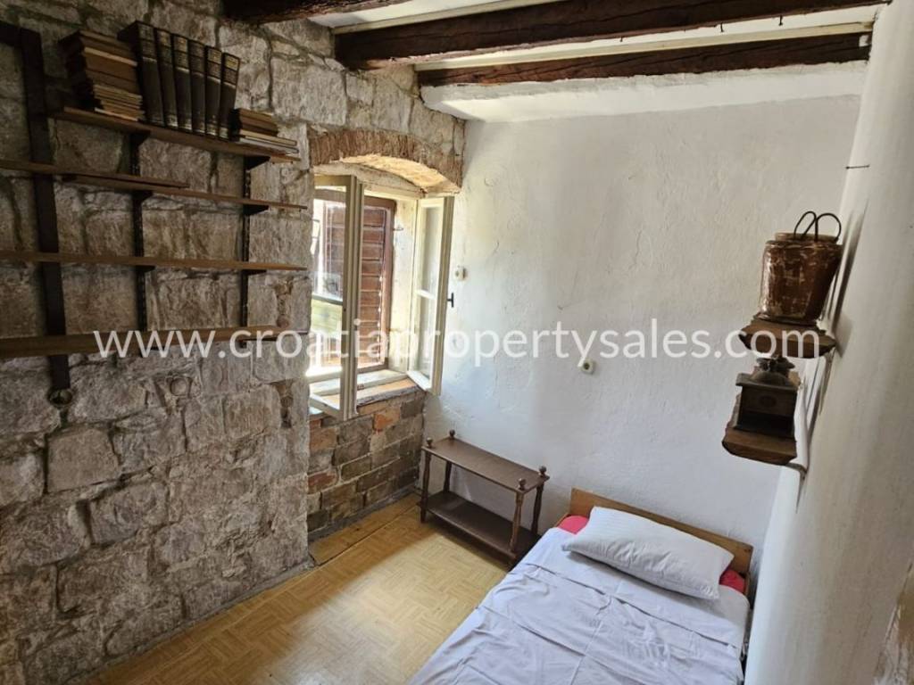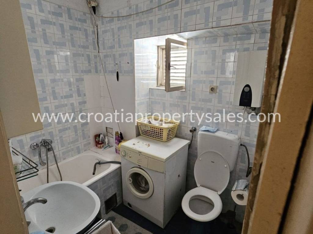 Apartment on the first floor of a stone house, first row to the sea. It is located in an attractive location in the center of a small town. The apartment has 70 m2, net 90 m2 and consists of 3 bedrooms and a bathroom.Renovation is required. The apartment is south-oriented and has a sea view. Access by car is possible but there is no private parking. This property has great potential in tourism.