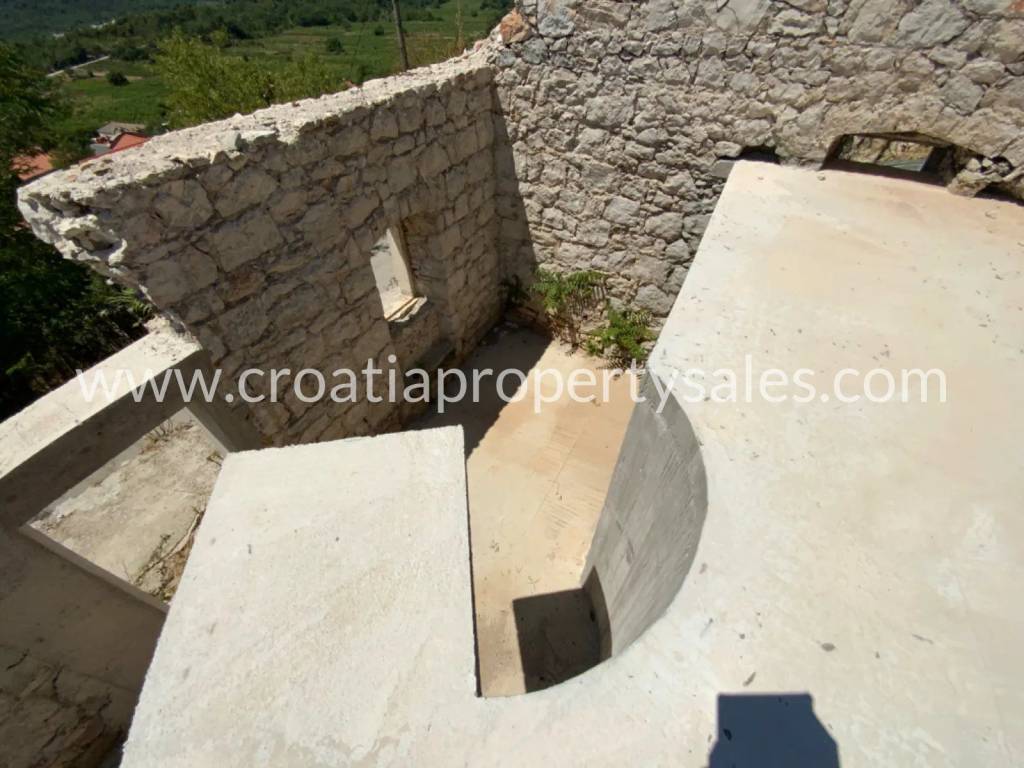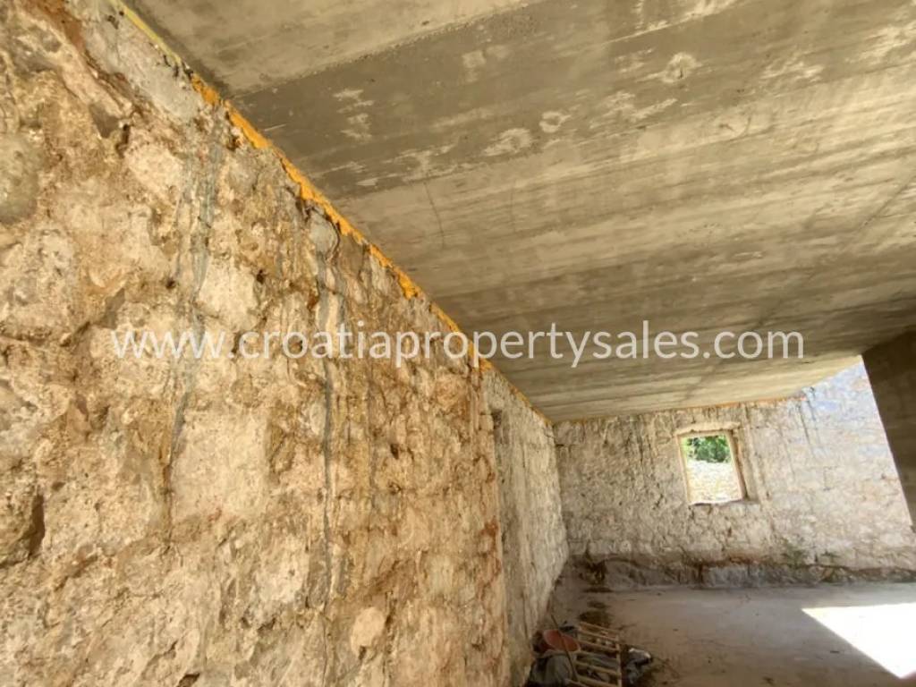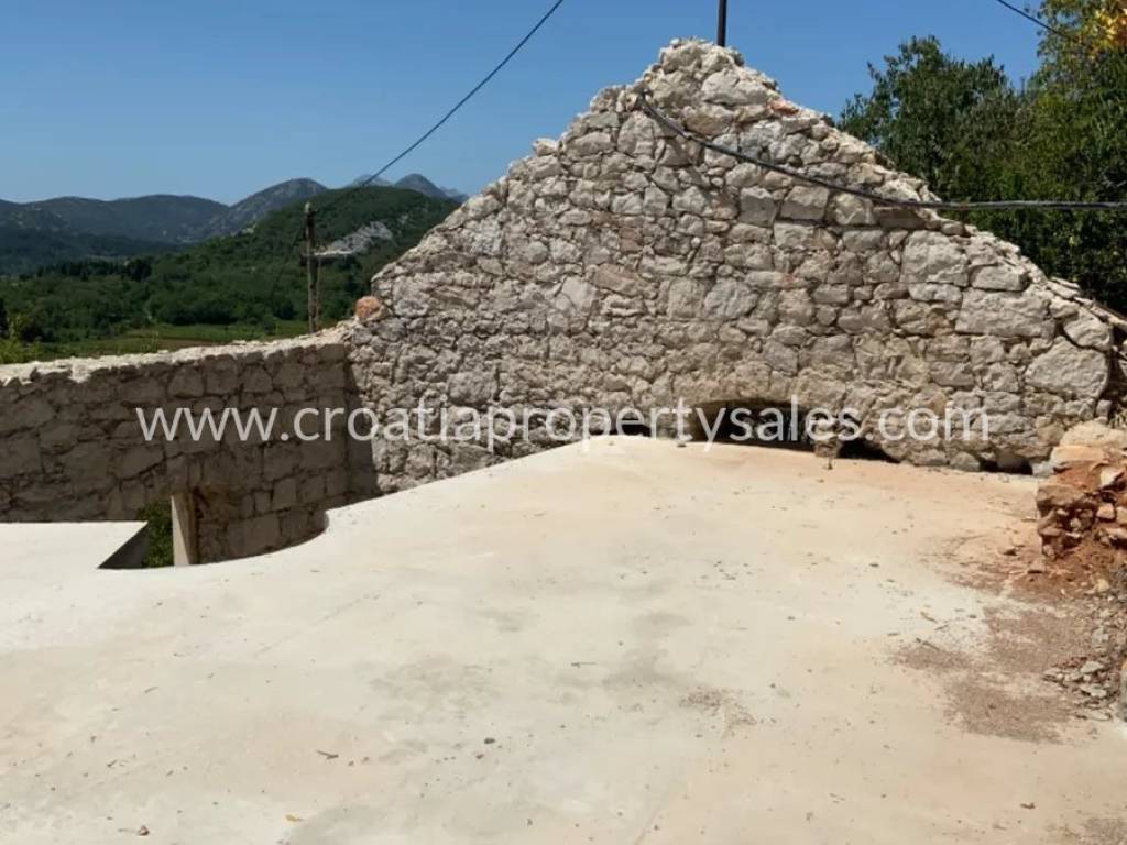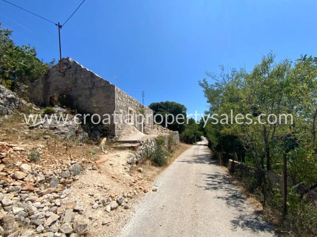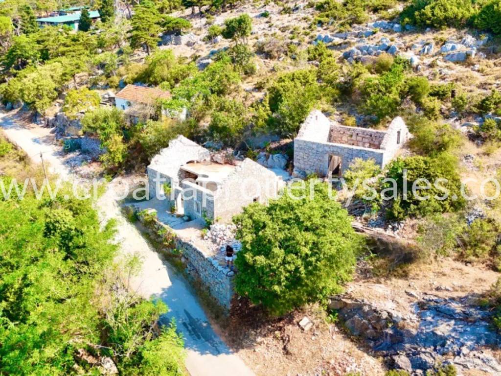 Two old stone houses for renovation, on a smaller plot in the very heart of Pelješac. The plot is 280 m2 big, and the houses are 54 m2 and 32 m2. Some minor renovations have already started, and the property comes with a renovation project. According to the project, the following is planned for the 54 m2 house: an entrance area with a spiral staircase and a gallery on the first floor, two bedrooms, each with its own bathroom on the ground floor, and an open space for the kitchen, dining room and living room on the first floor with access to the terrace. For the 32 m2 house: an open dining room and living room with a kitchen and a toilet on the ground floor, a spiral staircase and a gallery on the first floor where a bedroom with a bathroom is planned. The property is a few minutes' drive from the sea.