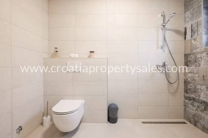 Upstairs there are 4 bedrooms, each with its own bathroom, 2 rooms have access to a terrace of 40 m2. In the basement of the house there is a separate machine room for the swimming pool, and a basement of about 50 m2.