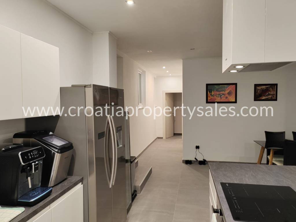 Spacious apartment on the first floor of a terraced house, first row to the sea just 10 minutes from Trogir.
