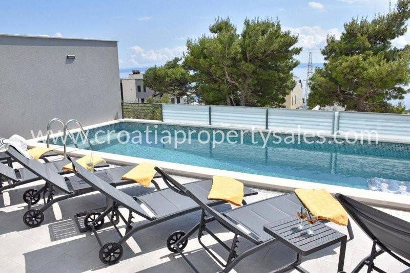 Semi-detached building of modern design with a sea view, in the western part of Makarska.