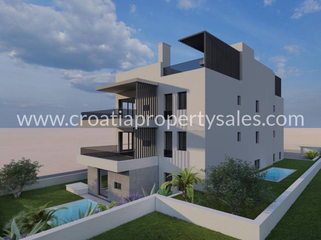 Each apartment on the ground floor will have an outdoor area, with a garden and its own swimming pool, while the top floor apartments will have access to their own private terraces, with a swimming pool and lounge area on them.