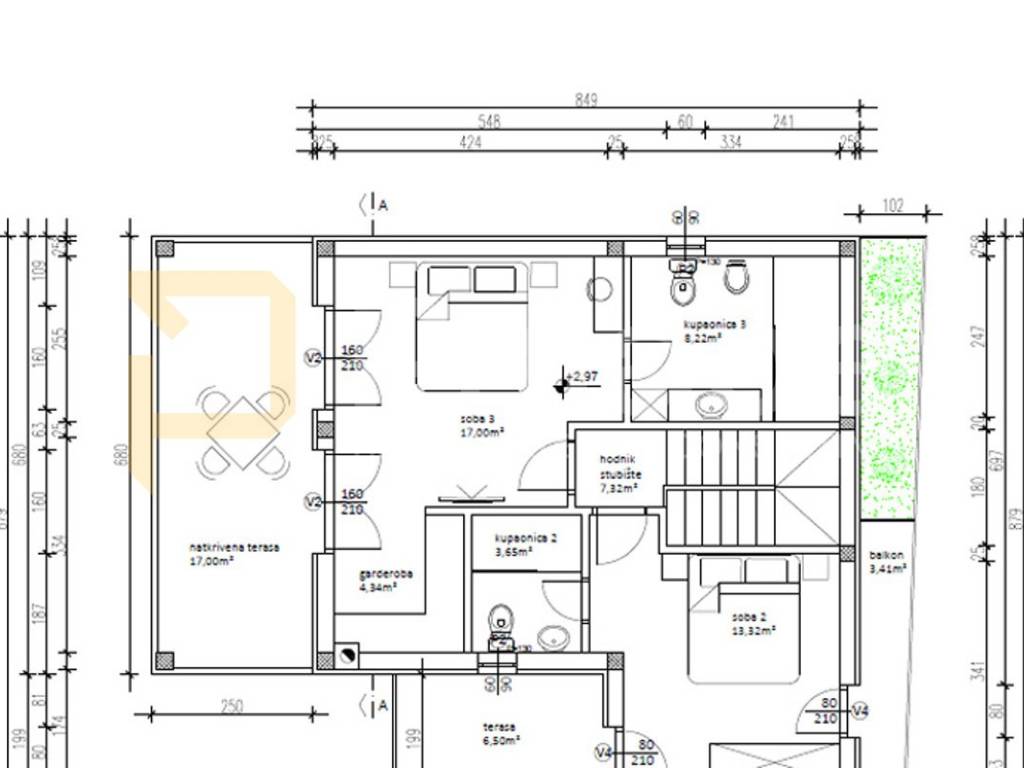 The designed villa has a total gross area of 152.89 m2 spread over two floors - ground floor and first floor, with an expected net area of approximately 141.51 m2.