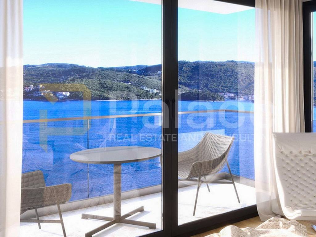 On the first floor, with an area of around 74 m, there are two bedrooms, two bathrooms, a wardrobe, and a balcony with a view of the sea and the island of Korčula. The top floor provides a sense of privacy and retreat, with a view completely open to the sea.