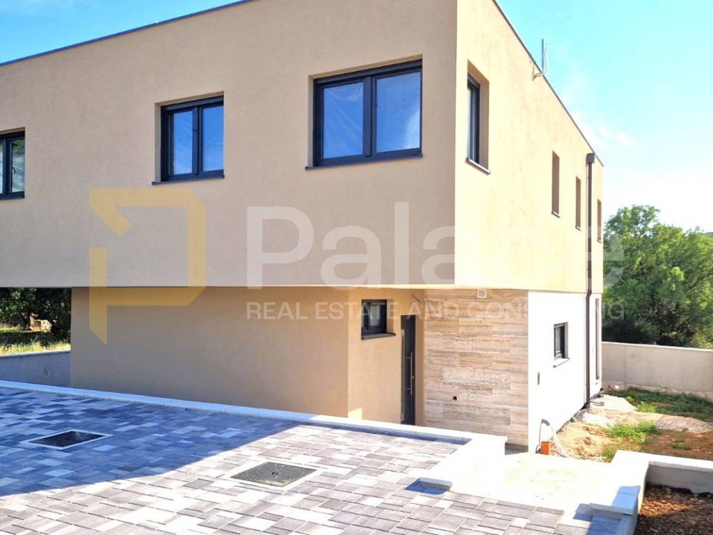 For sale is a duplex house in a new building on 2 floors with 2 parking spaces and a garden, with a living area of 106 m2 in the town of Tisno.