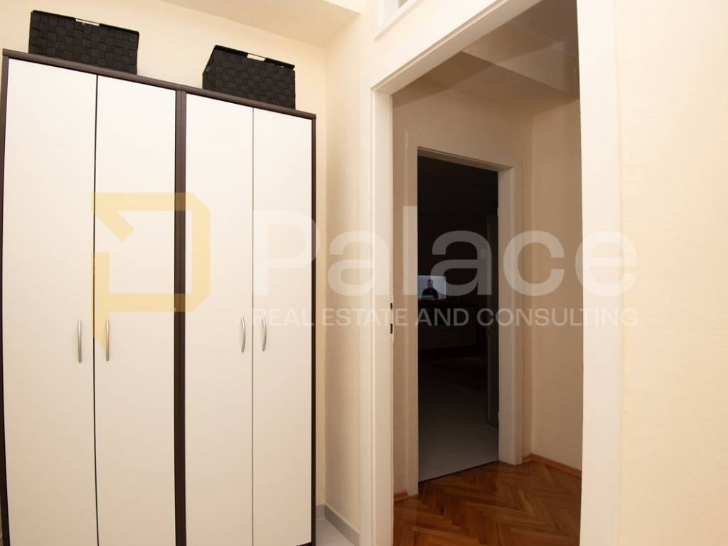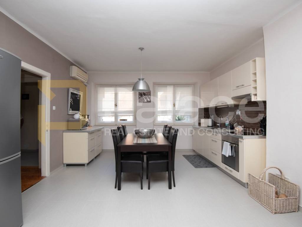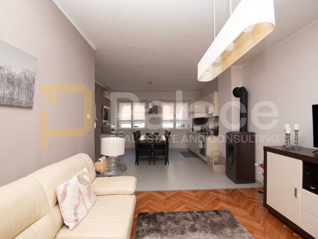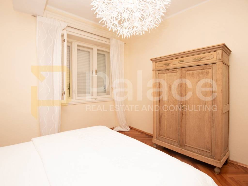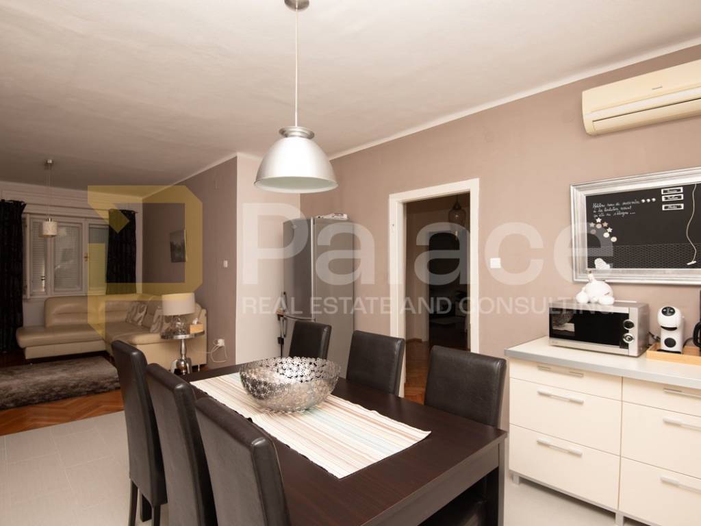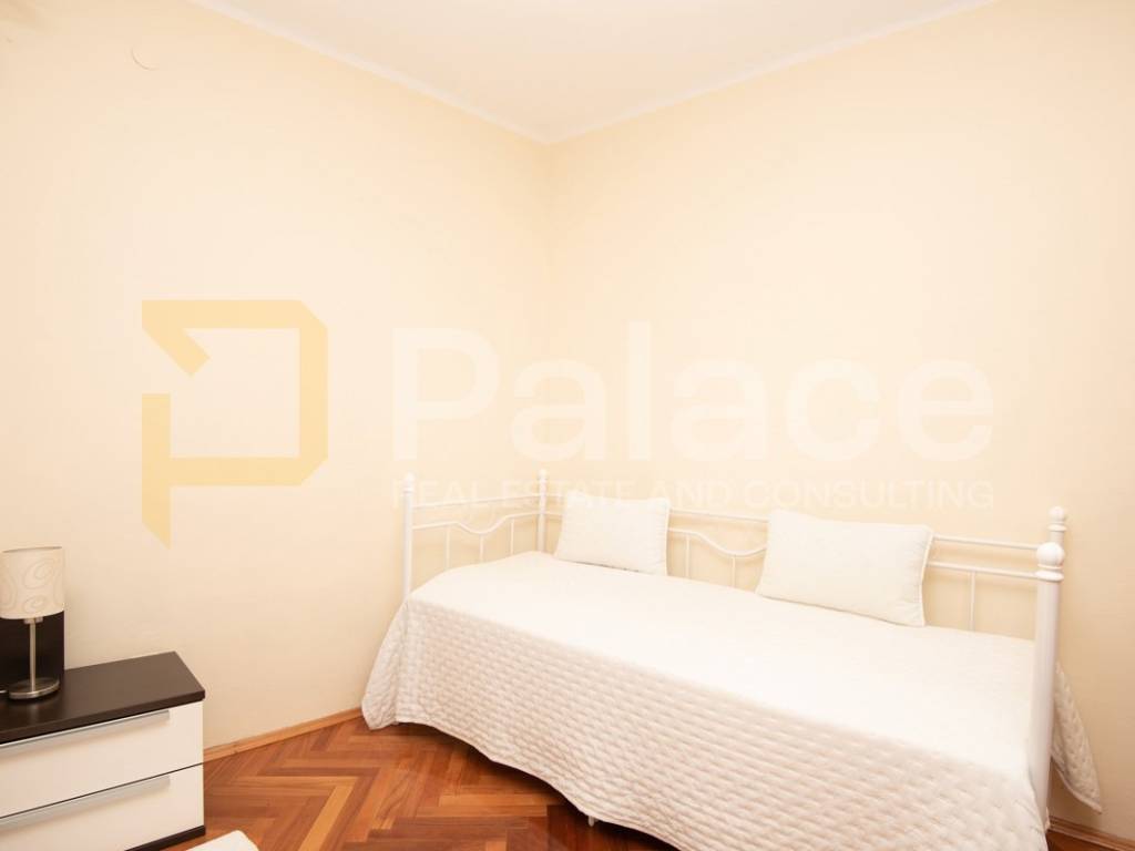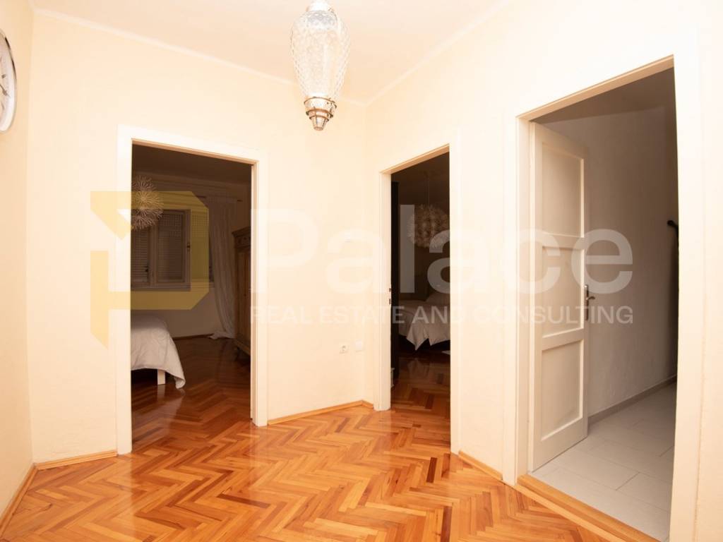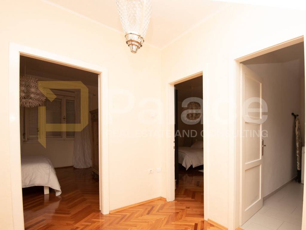 The apartment is located on the first floor and is extremely spacious and nicely furnished. Renovated in 2008, all installations have been replaced. The apartment has a living area of 86.90 m2 and consists of an entrance area, two spacious bedrooms with a double bed and wardrobe, a bathroom and a separate toilet, as well as a large open space area with a kitchen, dining room, and living room. The apartment includes a terrace facing the inner courtyard, providing peace, as well as a storage room for belongings. In the courtyard, there is a small house of approximately 15 m2, which can be converted into a socializing area or another small residential unit, as a gallery can be built due to its height.