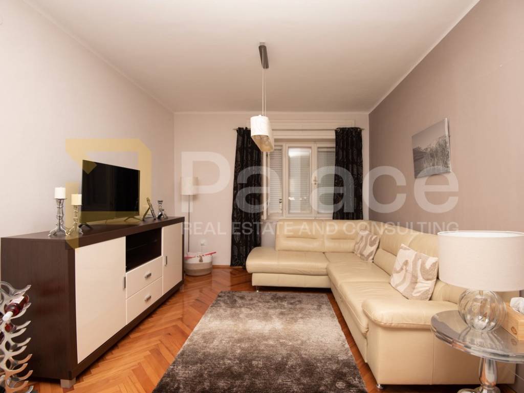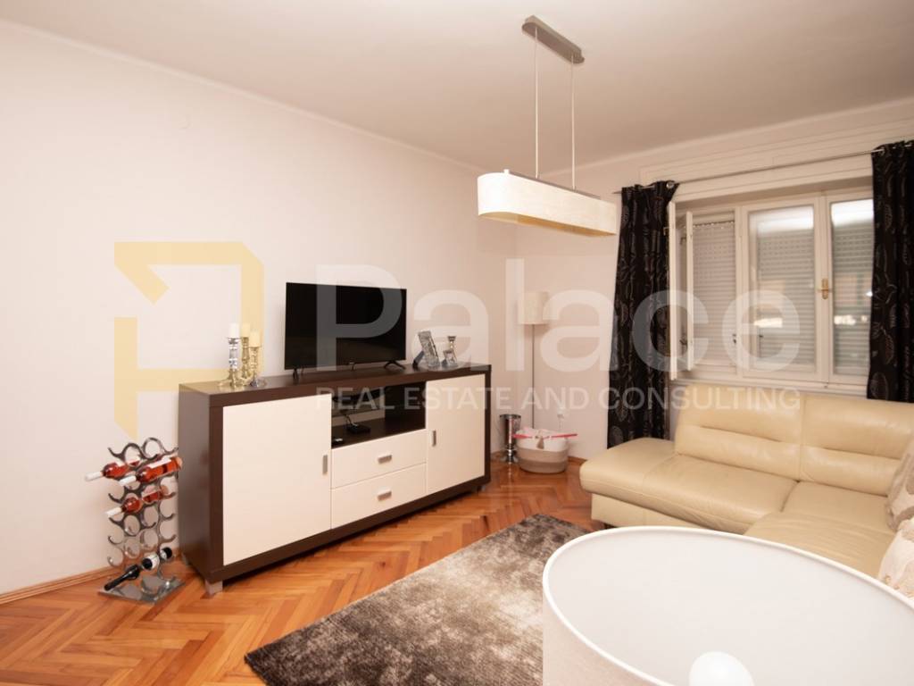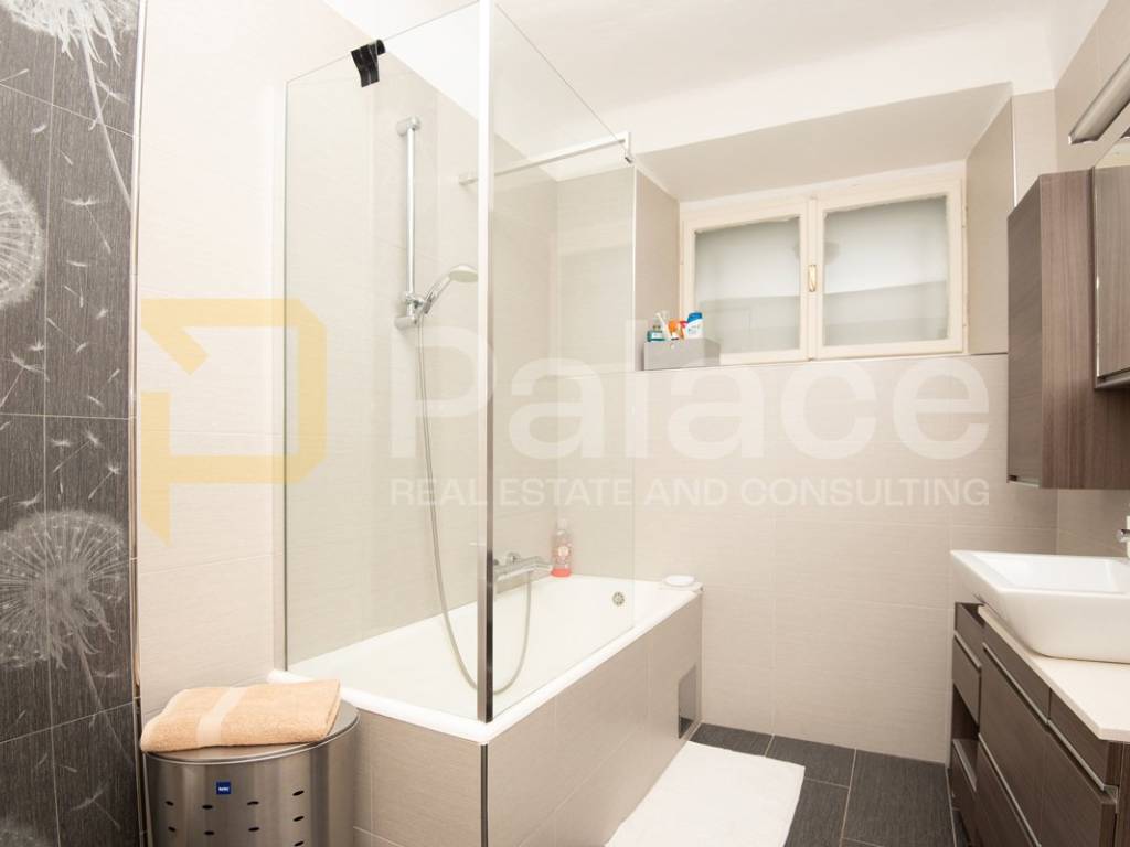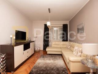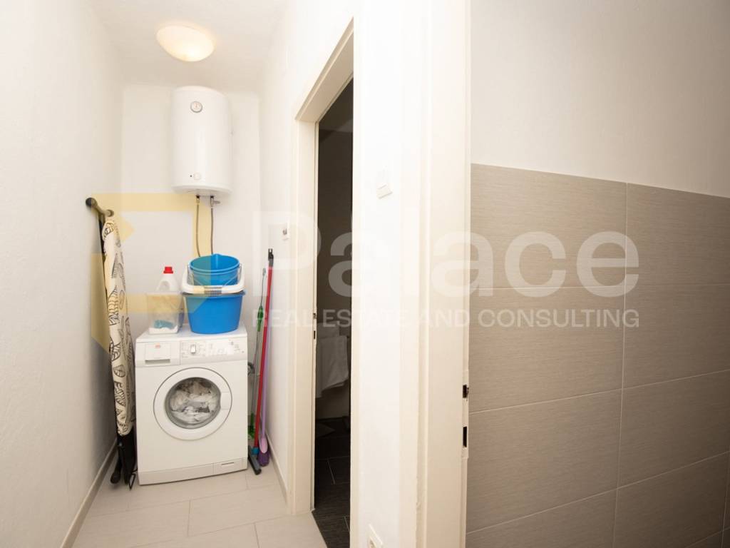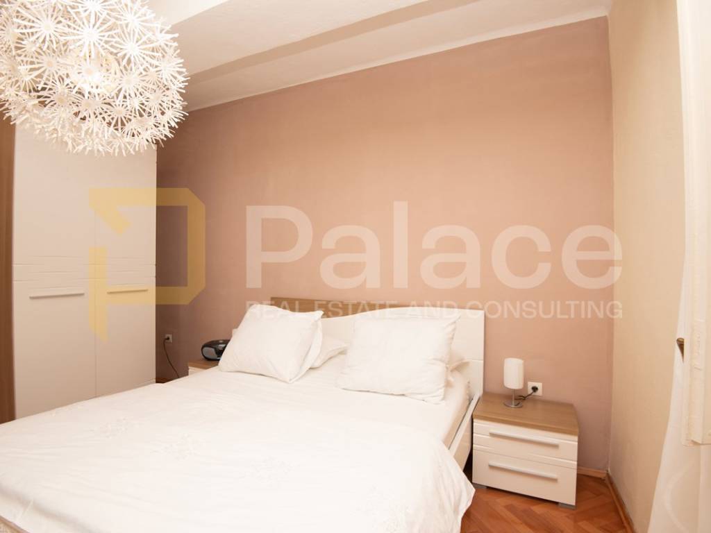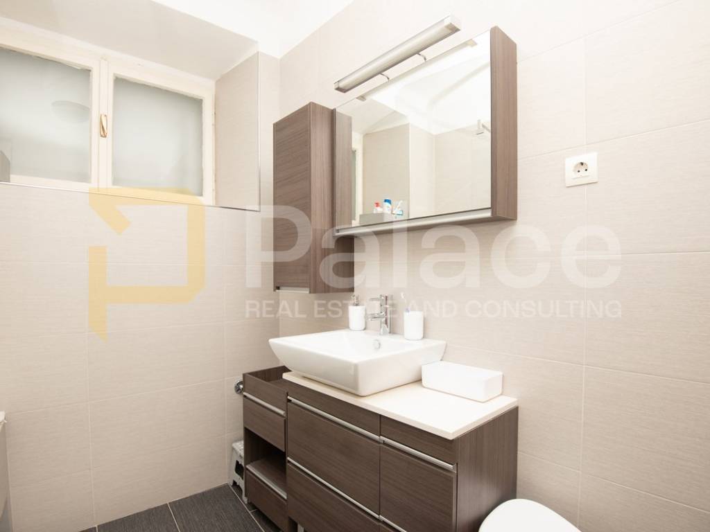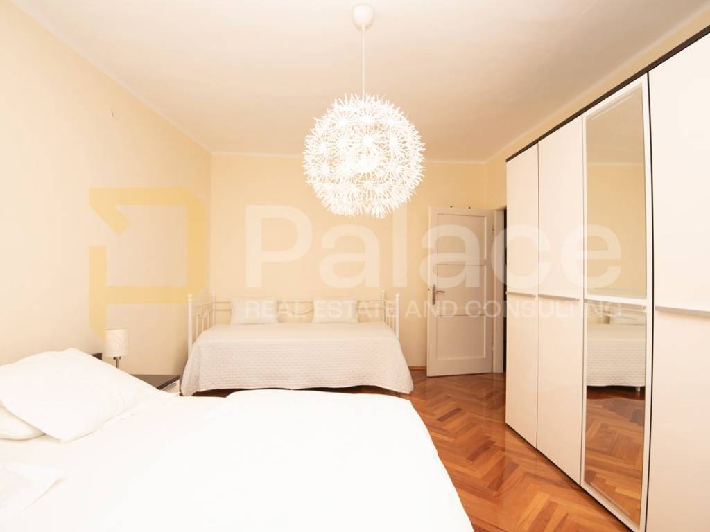 The apartment is located on the first floor and is extremely spacious and nicely furnished. Renovated in 2008, all installations have been replaced. The apartment has a living area of 86.90 m2 and consists of an entrance area, two spacious bedrooms with a double bed and wardrobe, a bathroom and a separate toilet, as well as a large open space area with a kitchen, dining room, and living room. The apartment includes a terrace facing the inner courtyard, providing peace, as well as a storage room for belongings. In the courtyard, there is a small house of approximately 15 m2, which can be converted into a socializing area or another small residential unit, as a gallery can be built due to its height.