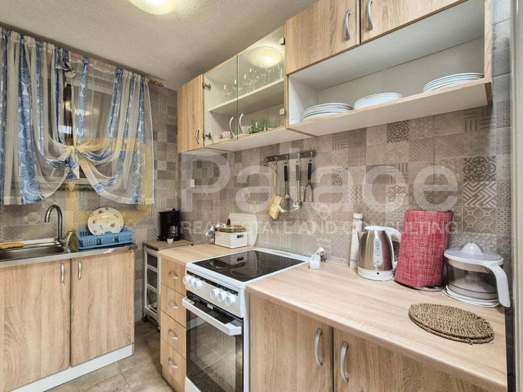 On the first floor, there is a comfortable two-bedroom apartment of approximately 100 m2, consisting of a terrace with partial sea view, living room, kitchen with dining area, two bedrooms, and a bathroom. External stairs lead to the second floor, where another two-bedroom apartment of similar size and layout is located - kitchen with dining area, two bedrooms, and a bathroom.