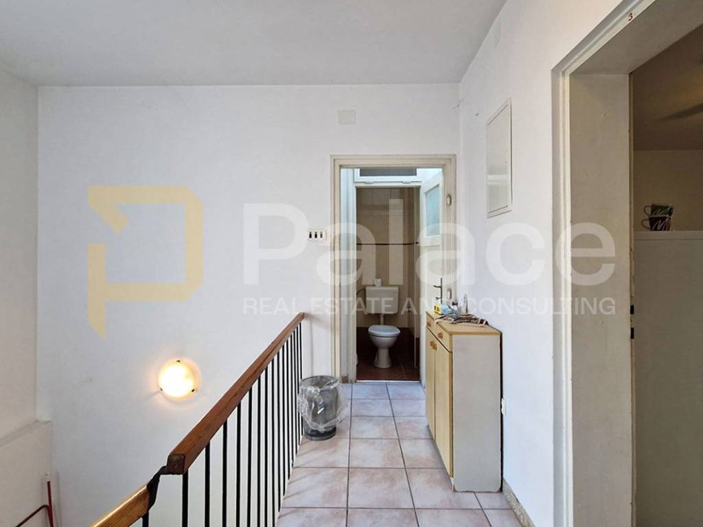 The ground floor of the house consists of several rooms with various purposes. The hallway leads to a bathroom without a toilet, a living room, and a space that used to be a kitchen but is now used by the current owners as a practical laundry room. On the ground floor, there is also a space that once housed a café with a separate hallway and two toilets (male and female), a foyer with access to a small, yet attractive courtyard, and a former restaurant with a bar, kitchen, and storage room.