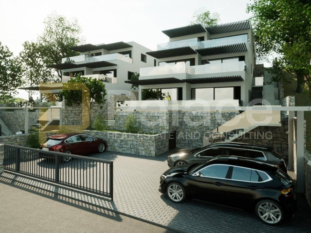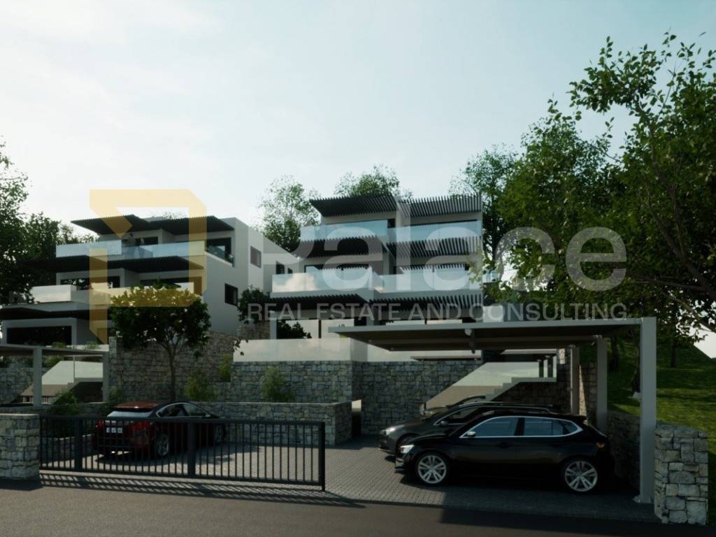 The apartment is located on the first floor with its own entrance, spanning the entire floor, and consists of an open concept kitchen, dining and living room, a hallway leading to the bathroom and three large bedrooms, as well as a large terrace with sea view.