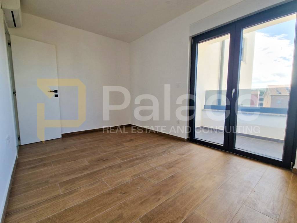 A modern apartment (S7) is for sale on the first floor of a new building, located approx 350 m from Mali Dubrovnik beach. It consists of a living room, bedroom, bathroom, spacious balcony, and loggia. The apartment is equipped with Bosch air conditioning units in all rooms, burglar-proof and fireproof doors, first-class ceramic flooring, luxurious sanitary ware, aluminum-PVC windows with triple glazing filled with argon, mosquito nets.