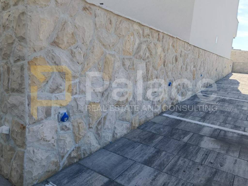 A modern apartment (S5) is for sale on the second floor of a new building, located approximately 350 meters from Mali Dubrovnik beach. It consists of a spacious open space area of kitchen, dining room and living room (27.37m2), bedroom 1 (9.22m2), bedroom 2 (7.46m2), bathroom (3.79m2), hallway (1.32m2), covered balcony (2.02m2), uncovered balcony (3.44m2) and a roof terrace (43.87m2) offering enchanting views of the sea and surrounding landscape. The apartment is equipped with Bosch air conditioning units in all rooms, anti-burglary and fireproof doors, first-class ceramic flooring, luxurious sanitary ware, aluminum-wood windows with triple glazing filled with argon, and mosquito nets.