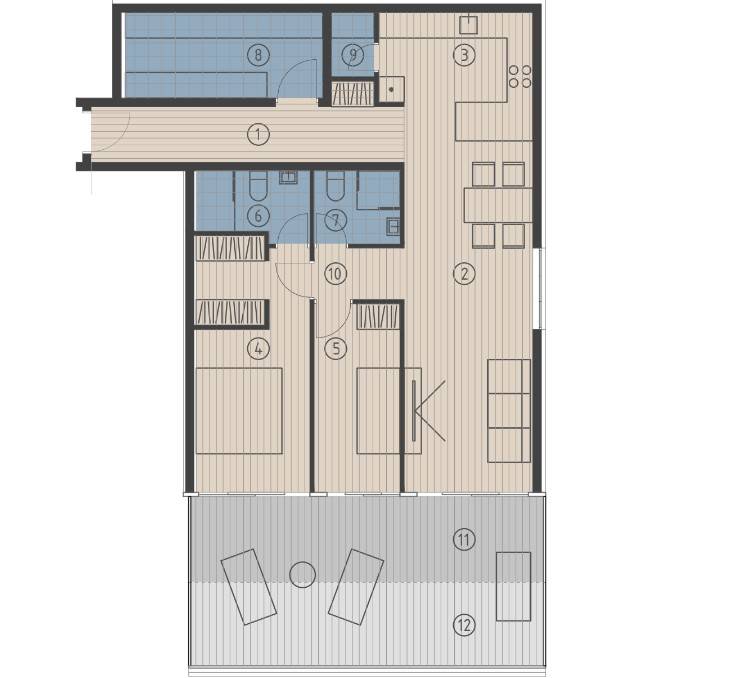 - bathroom with toilet 2: 3.45 m
