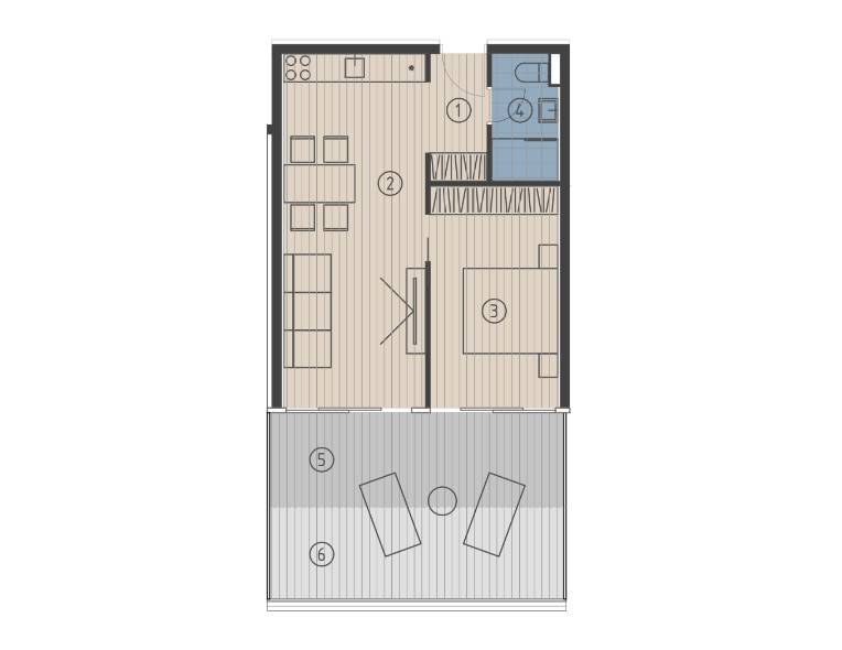 One-bedroom apartment S101 is located on the first floor of the new building, with a total area of 67.66 m and includes: