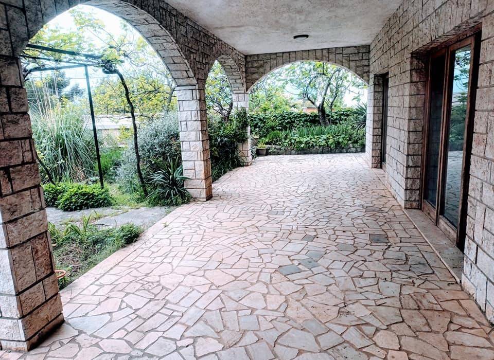 The house and garden are built/landscaped in a Mediterranean style natural stone, granite, and vaults. The garden has an area of about 1000m2 and within it, there is a secondary courtyard building (86m2), a water cistern (60m3), and six parking spaces. The house's garden has great potential and enough space for building a playground, a pool, and a barbecue area.