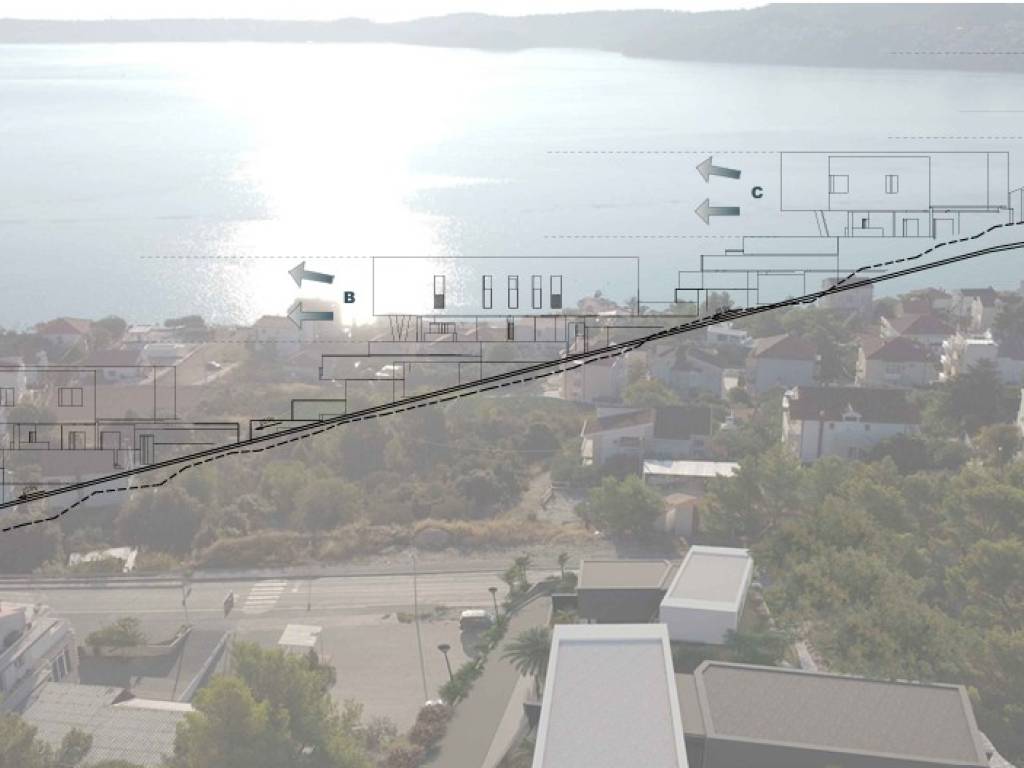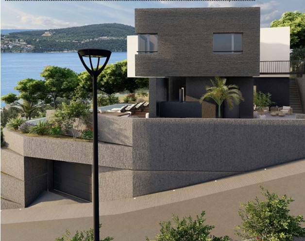 On an elevated part of Seget Donji, there is land where a luxury complex of villas will be built. The complex will consist of 5 villas in a cascading construction concept, allowing for an open view towards Trogir, Seget, Okrug, the sea, and the islands.