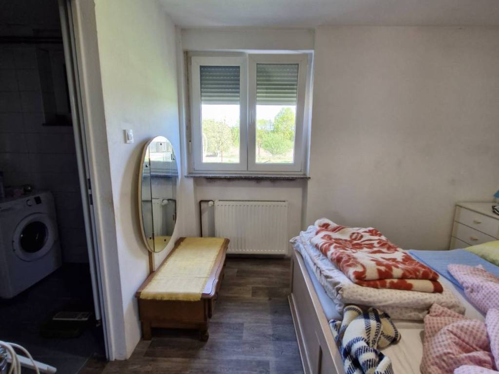 The area of the house for demolition/renovation is 63 m2, and it consists of a kitchen, a bathroom, a living room, a storage room and two bedrooms.