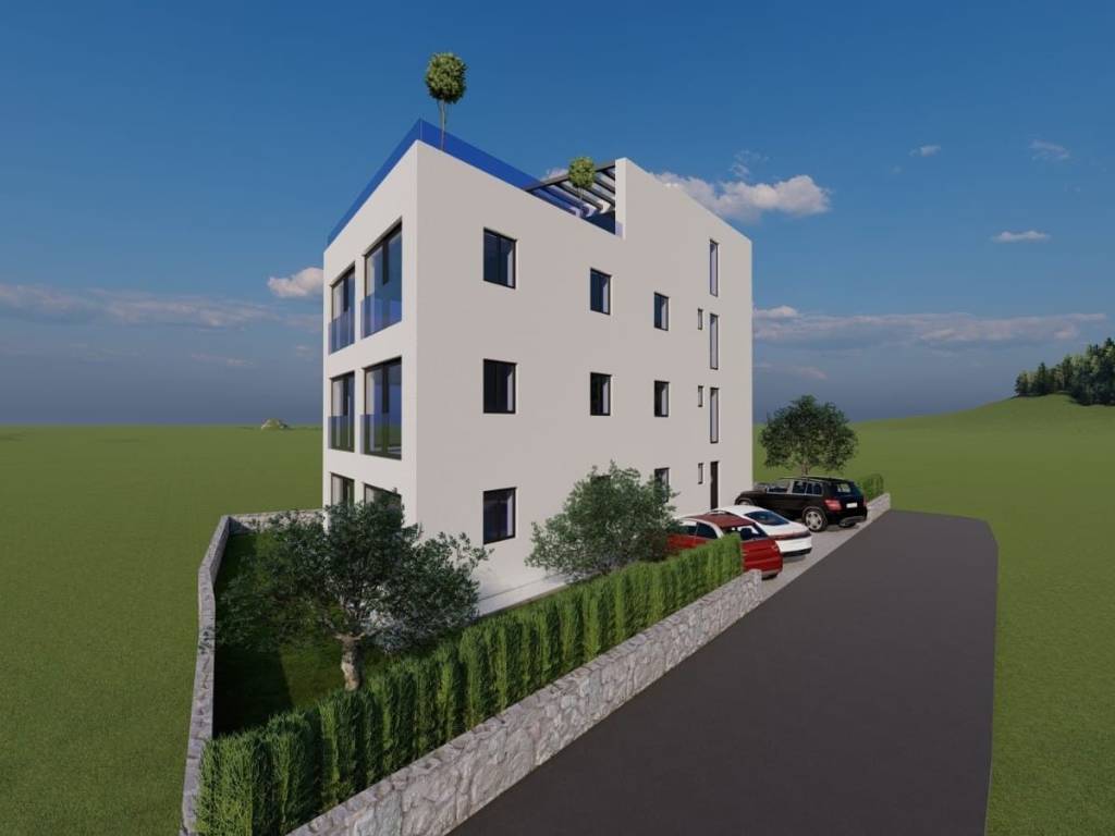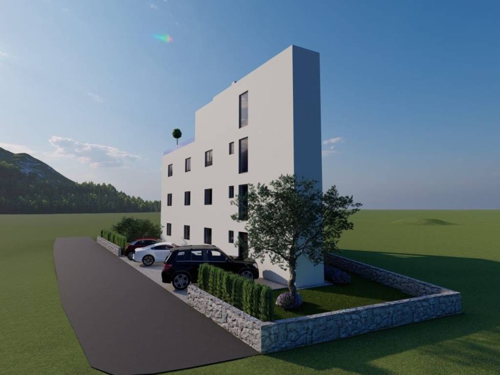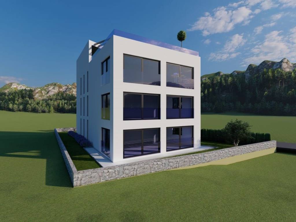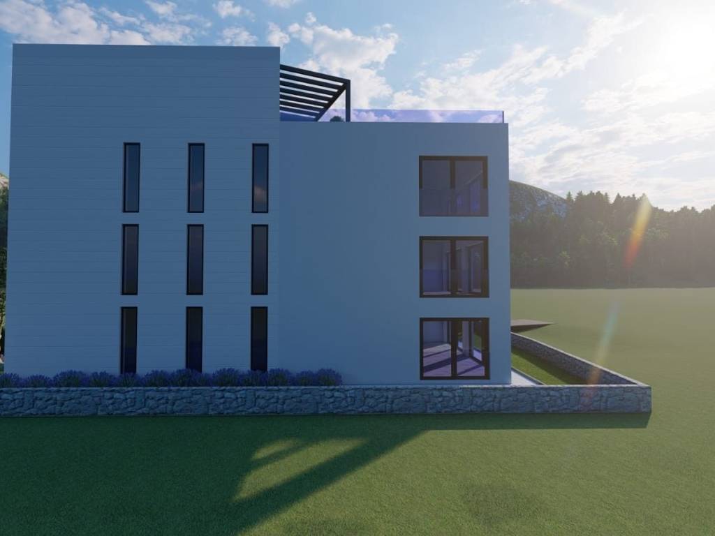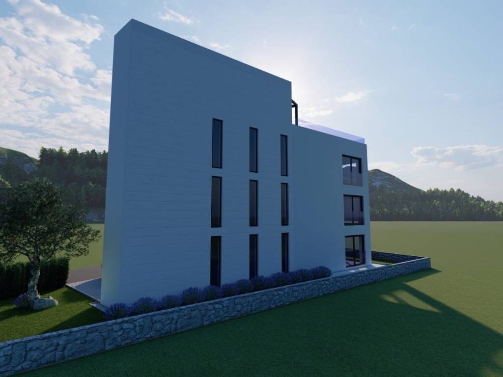 Na prodaju je građevinsko zemljište s gotovim građevinskim projektom. Parcela je površine 351m2. Projekt je za zgradu od tri stambene jedinice, na četvrtoj etaži nalazi se prostrana galerija sa bazenom i kaminom, do koje se dolazi liftom. U projektu se ispred zgrade nalaze prostrani vrt te parkirna mjesta. Zgrada će imati pogled na more.