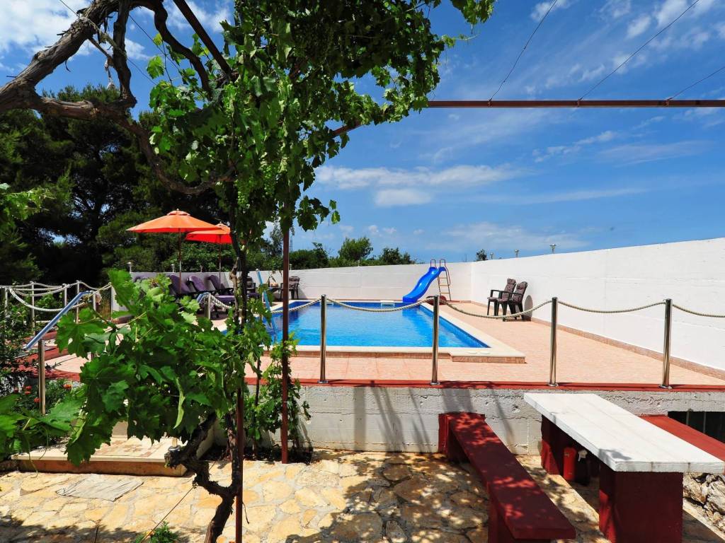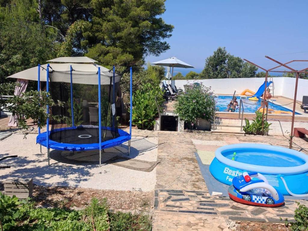 The house has a spacious garden with Mediterranean plants and vines, which provides a wonderful atmosphere. An additional benefit is the swimming pool, perfect for refreshing yourself during hot summer days.