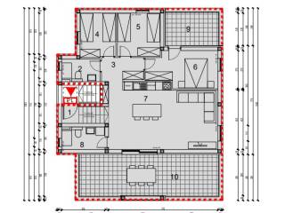 Located on the last floor of a smaller residential building, it extends over the entire floor, with a spacious terrace offering a panoramic view of the sea.