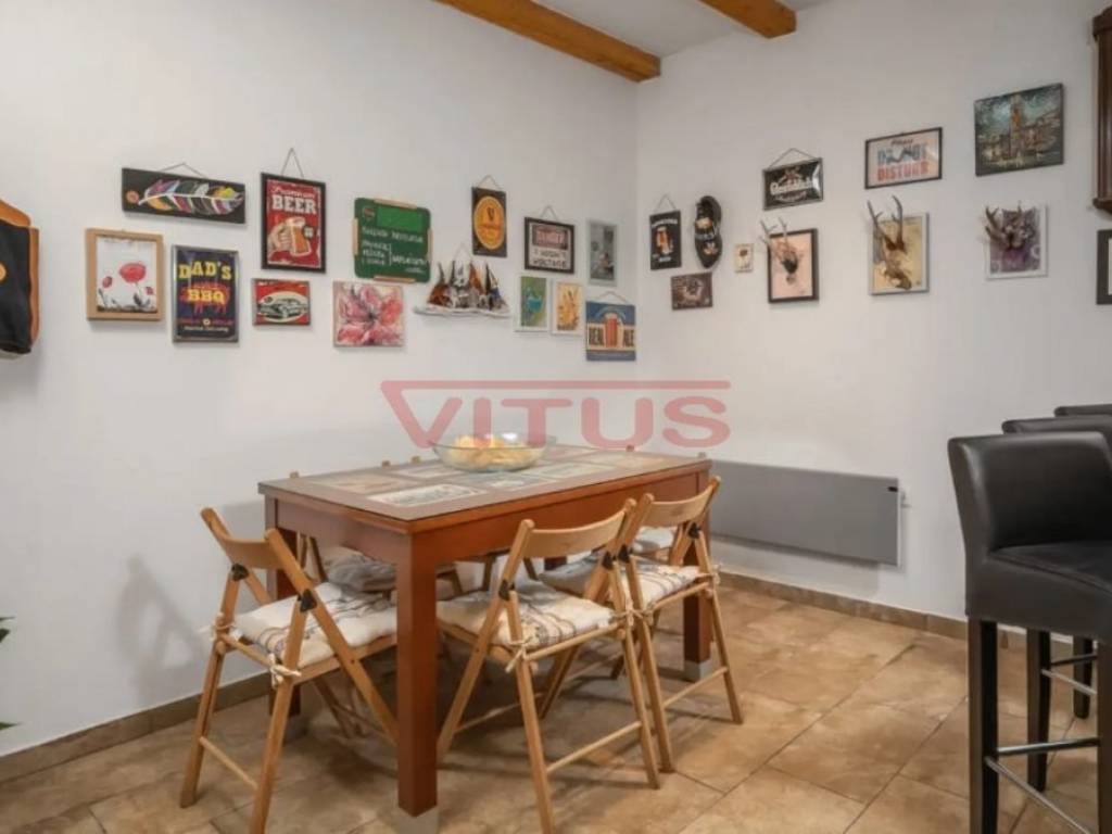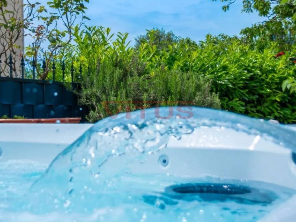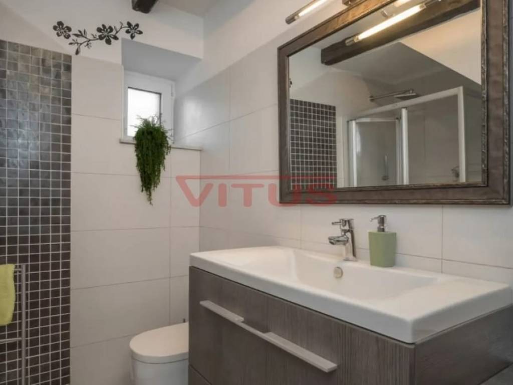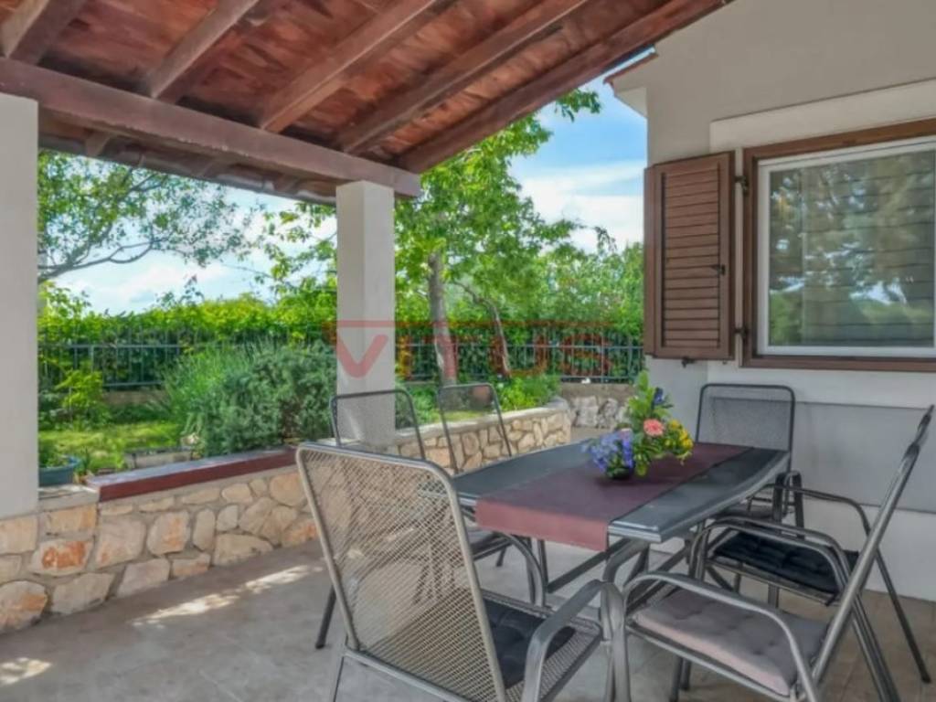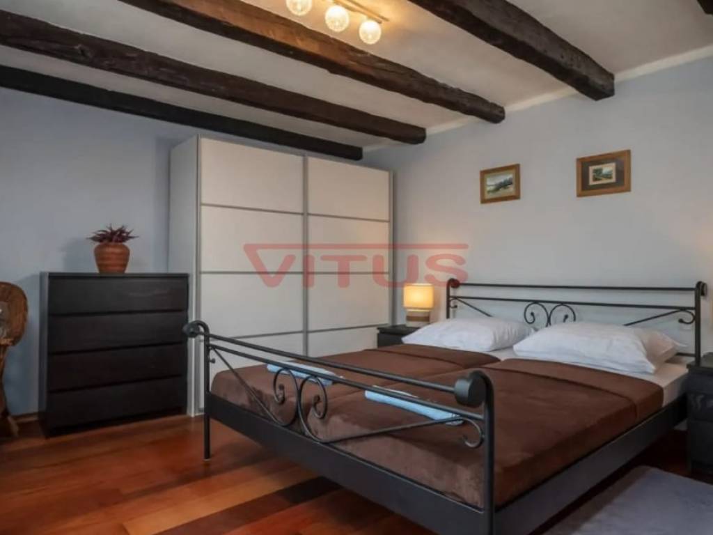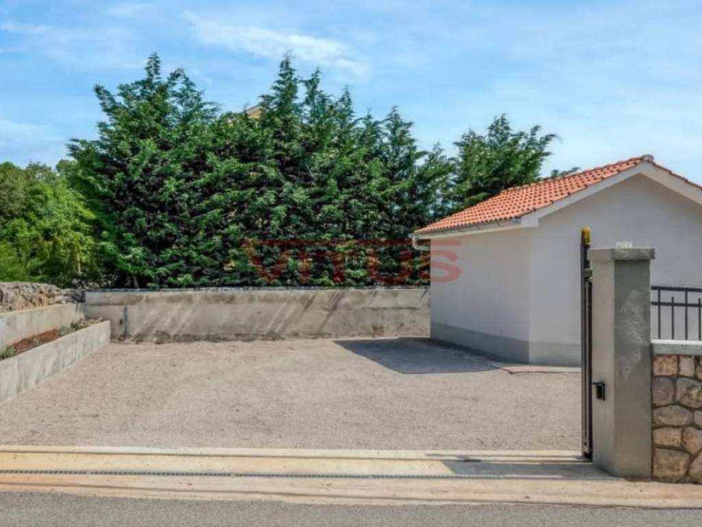 Dobrinj, island of Krk! Renovated stone semi-detached house of 169 m2 is located in a small, quiet place near Dobrinj. It consists of a ground floor and first floor containing a kitchen, living room, social area room, bathroom, two bedrooms and a spacious terrace. On the beautifully landscaped 400 m2 plot there is a covered terrace, jacuzzi and outdoor shower, while on the adjacent 270 m2 plot there are 4 parking spaces and a 20 m2 storage room. The house has been completely renovated with quality materials and equipment, emphasizing Mediterranean rusticity. In addition to standard air conditioning, heating is available using electric radiators and wood-burning stove, ensuring a comfortable stay throughout the year. The house is sold fully furnished and equipped and is categorized for tourist rental. It is located in a quiet location, 4000 m from the sea.
