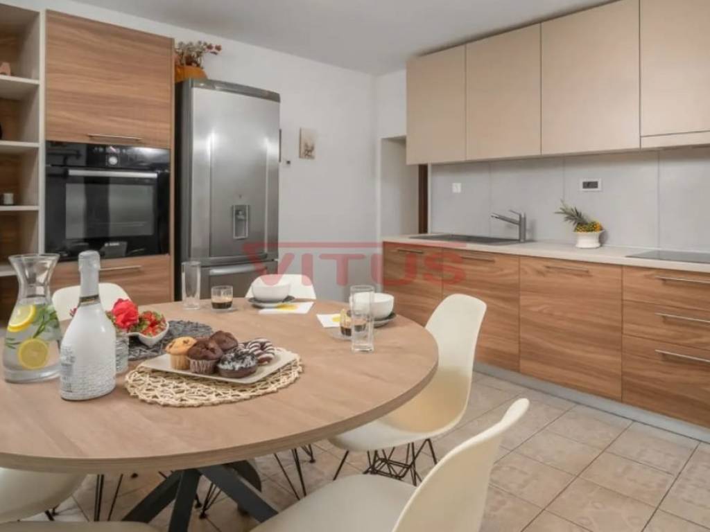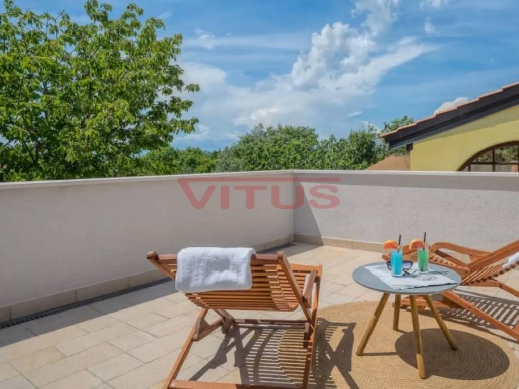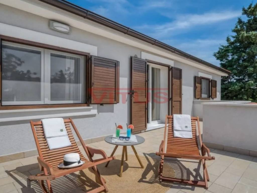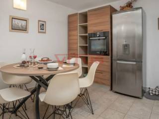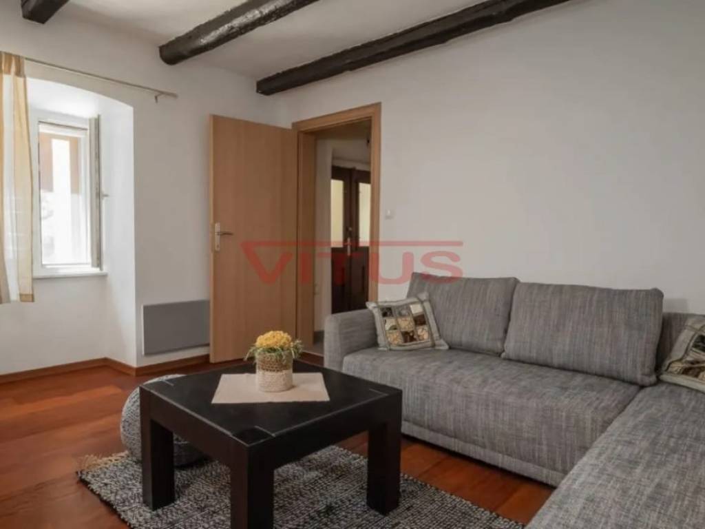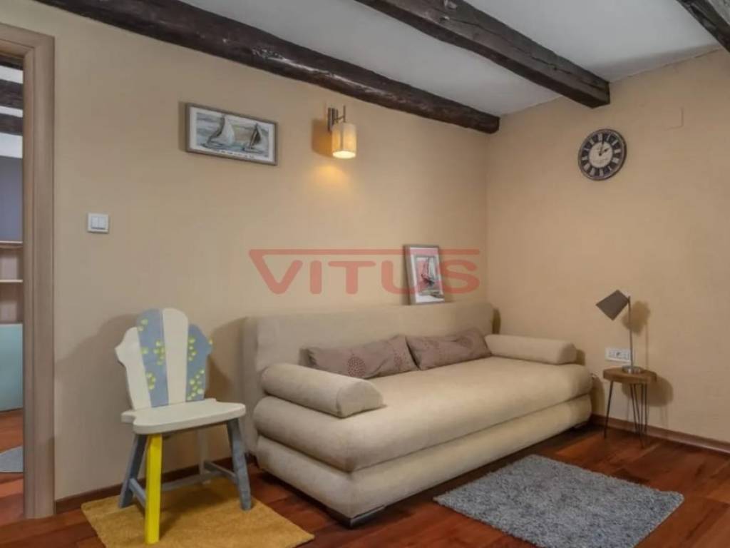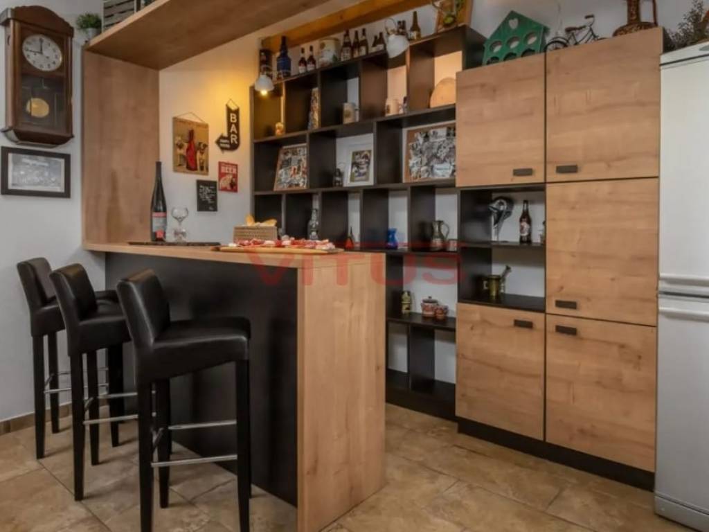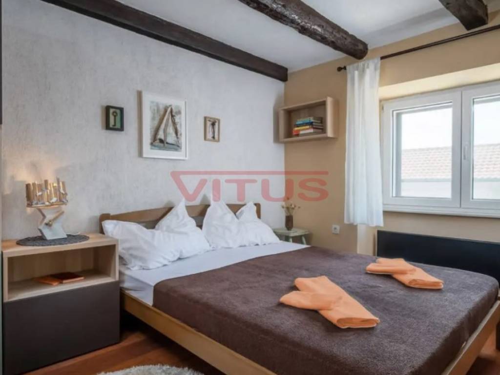Dobrinj, island of Krk! Renovated stone semi-detached house of 169 m2 is located in a small, quiet place near Dobrinj. It consists of a ground floor and first floor containing a kitchen, living room, social area room, bathroom, two bedrooms and a spacious terrace. On the beautifully landscaped 400 m2 plot there is a covered terrace, jacuzzi and outdoor shower, while on the adjacent 270 m2 plot there are 4 parking spaces and a 20 m2 storage room. The house has been completely renovated with quality materials and equipment, emphasizing Mediterranean rusticity. In addition to standard air conditioning, heating is available using electric radiators and wood-burning stove, ensuring a comfortable stay throughout the year. The house is sold fully furnished and equipped and is categorized for tourist rental. It is located in a quiet location, 4000 m from the sea.