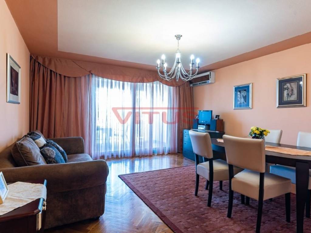 Two bedroom apartment, with a total living space of 68 m2, is located on the first floor of an apartment house in Njivice. It consists of a living room with a dining area, a kitchen, two bedrooms, a bathroom, a hallway and a loggia with an open sea view. The apartment has one parking space. High quality construction and equipment, air-conditioned, PVC joinery. It is sold furnished.