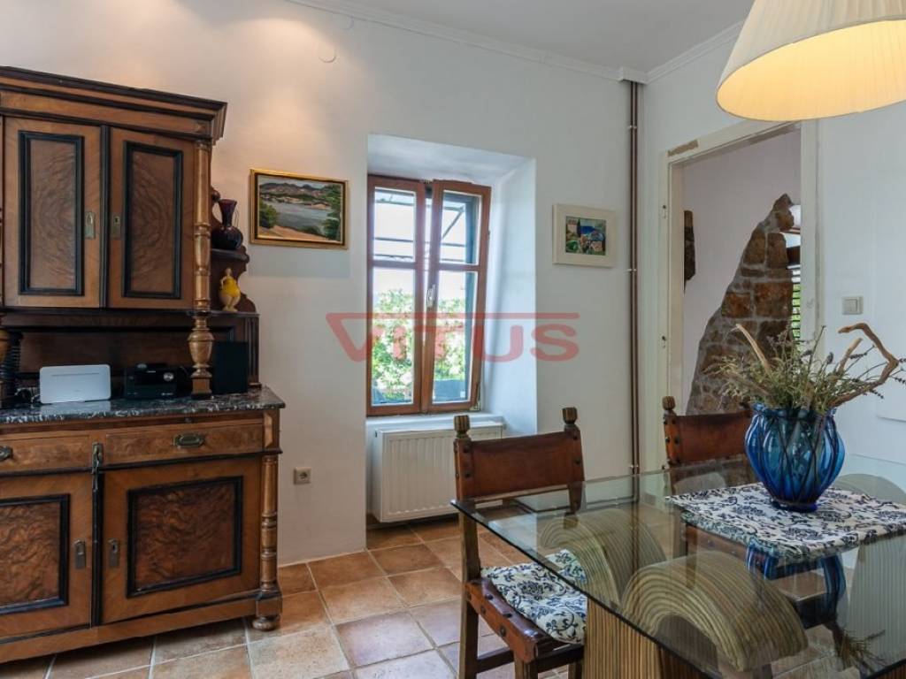 Traditional family stone house, located on a land plot of 406 m2, with a total living space of 140 m2, is located in the center of Šilo. It consists of ground and first floor. On the ground floor there is a living room, kitchen, dining room and bathroom. There are three bedrooms and a bathroom on the first floor. Renovated, air-conditioned, central heating and PVC joinery with mosquito nets. It is sold furnished. The house has a beautiful open sea view.