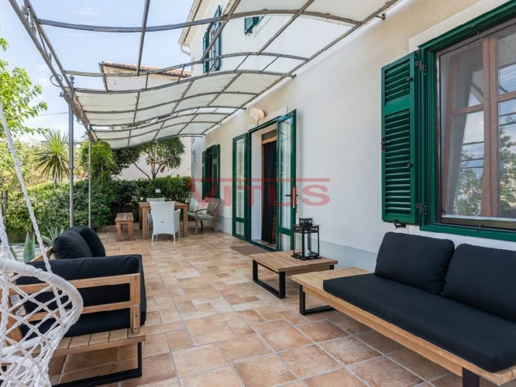 Air conditioning, Building permit, Built before 1968, Central heating system, City water supply system, Close to center, Close to the beach, Furnished, Garage, Garden, Large terrace, Location permit, Maintained garden, Near the sea, Paid electricity supply connections, Paid utility contributions, Paid water supply connections, Parking space, Paved access road, Proximity to school, PVC joinery, Renovated, Sea view, Semi-detached building, Title deed.