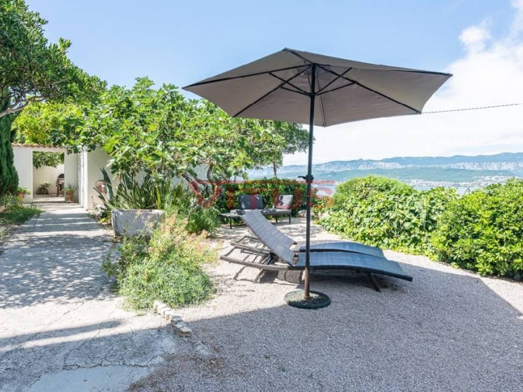 The exterior of the house includes a spacious Mediterranean garden, a large covered terrace, a small terrace with barbecue surrounded by greenery, two sundeck areas and the garage of 52 m2.
