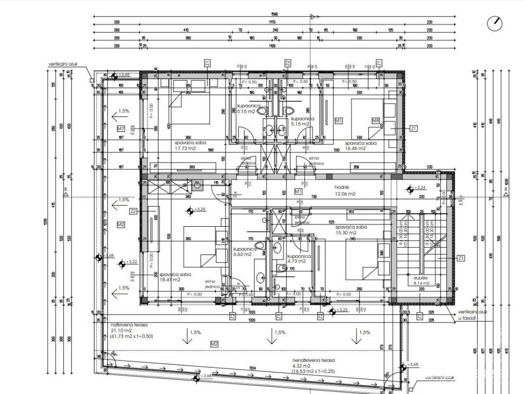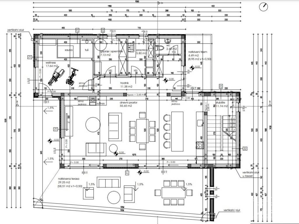 living room, while cooling is provided by air conditioners (all rooms). The carpentry is aluminum with three-layer glass, while the facade is energy-efficient, which ensures low heating and cooling costs. The villa is built with top-quality materials - 25 cm porotherm bricks, ceramics and first-class parquet floors, as well as sanitary facilities.