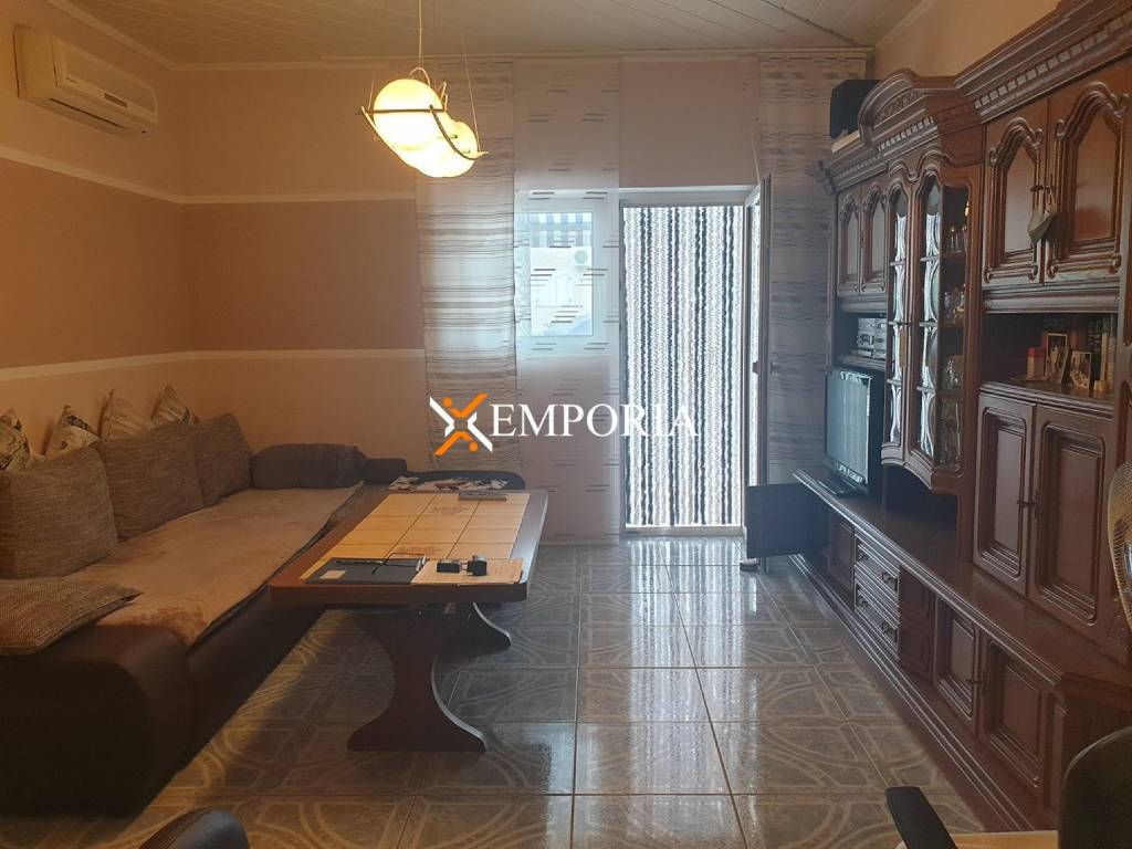 Ground floor consists of a garage and a spacious one-bedroom apartment. The apartment consists of an entrance, hall, bathroom, kitchen and dining room, living room, bedroom, and terrace and 2 storage rooms. The area of this apartment is approx. 75.59 m2.