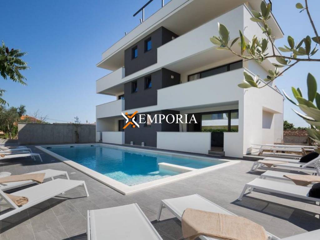 Prodaje se hotel kojeg čine dva objekta s ukupno 23 spavaće sobe i 19 kupaonica. Nalazi se na Plovaniji u Zadru. S obzirom da se radi o novogradnjama sa stilski uređenim sobama ova nekretnina postiže izvrsne rezultate najma i popunjenosti. Hotel raspolaže u dva objekta s ukupno ca. 916 m2, a izgrađeni su na zemljištu površine 1217 m2. Oba objekta su kategorizirana s 4 zvjezdice, s tim da crno-bijela zgrada ima čak sve preudvjete za dobiti 5 zvjezdica. Osigurano je 17 parkirališnih mjesta. Dvorište krasi i luksuzu ove nekretnine pridonosi bazen površine 65 m2 s grijanjem. Objekt sa žutom fasadom – vidi galeriju – raspolaže s ca. 480 m2, 12 spavaćih soba s kupaonicom, trosobnim stanom, kotlovnicom i dodatnim jednosobnim stanom kojeg je potrebno dovršiti i opremiti. Objekt s crno-bijelom fasadom – vidi galeriju – raspolaže s ca. 436 m2, 6 spavaćih soba s kupaonicom, dodatnim stanom (nije namješten) i skladištem u podrumu zgrade. Posebnostovog objekta je prostrana zatvorena i ostakljena terasa na zadnjem katu koja se koristi za posluživanje hrane i pića gostima hotela. Sa zadnjih katova se pruža divan pogled sve do mora!