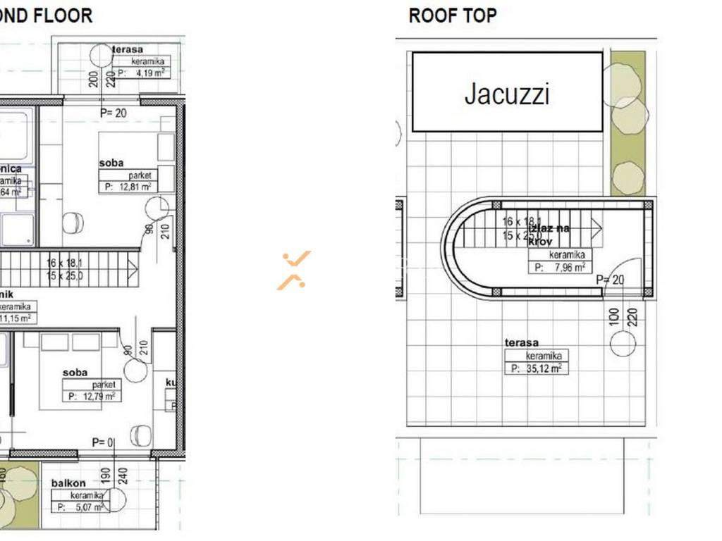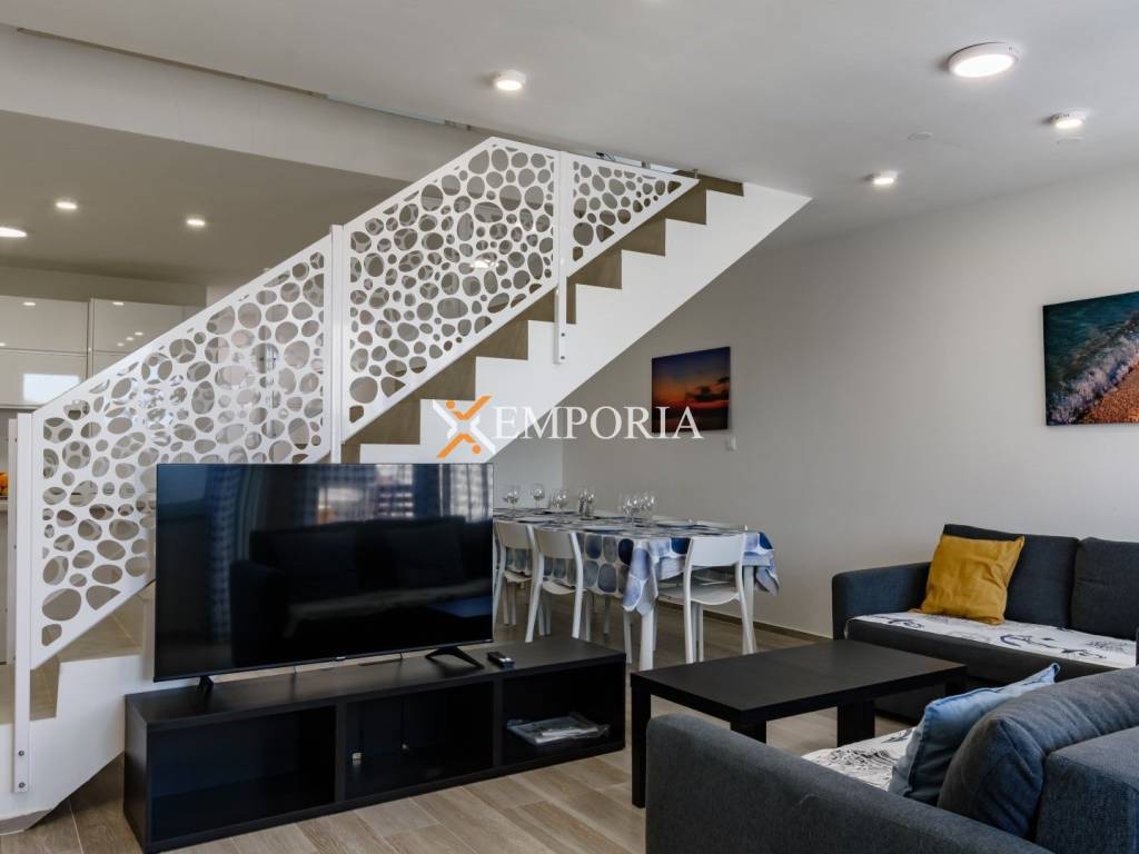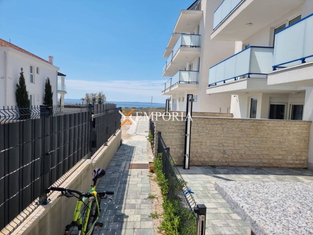 Multi-storey sea view apartment for sale in Privlaka. It consists of ground floor, 1st floor, 2nd floor and roof terrace. This type of apartment can be compared to a terraced house. It is only 90 m away from the sea. Access to the sea is direct.