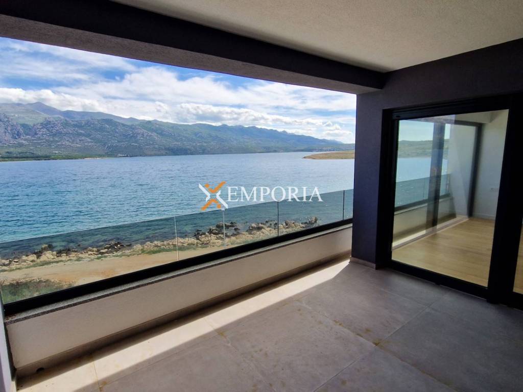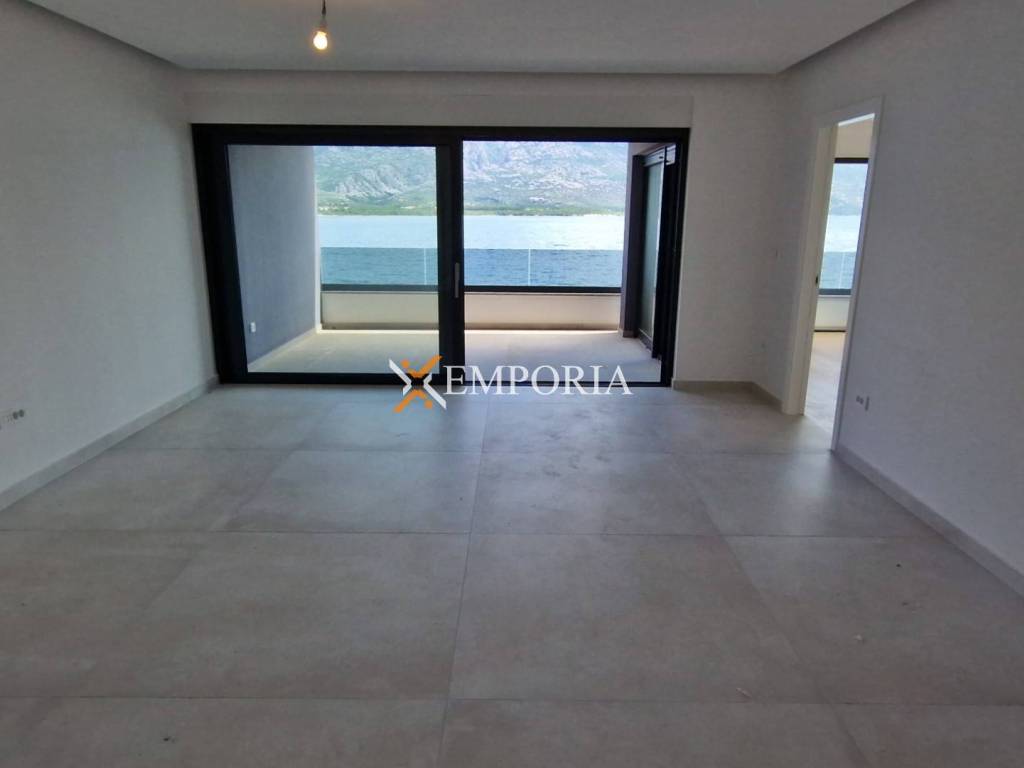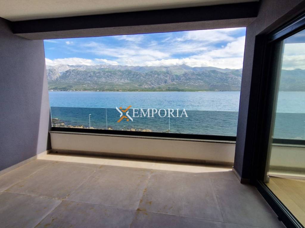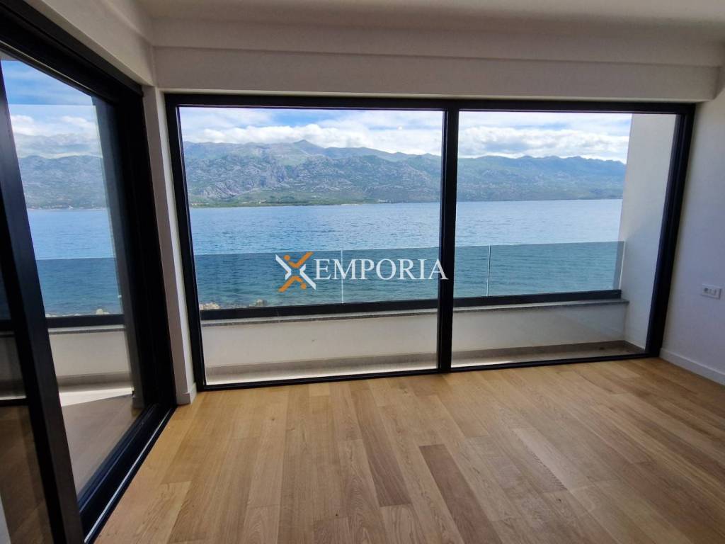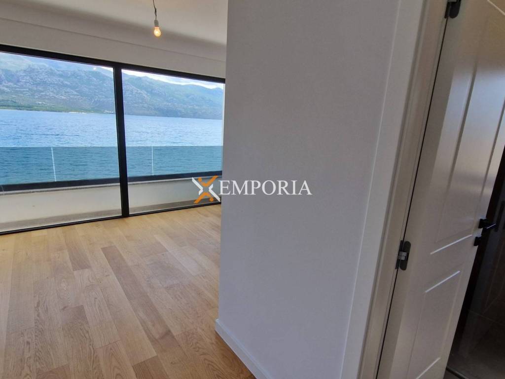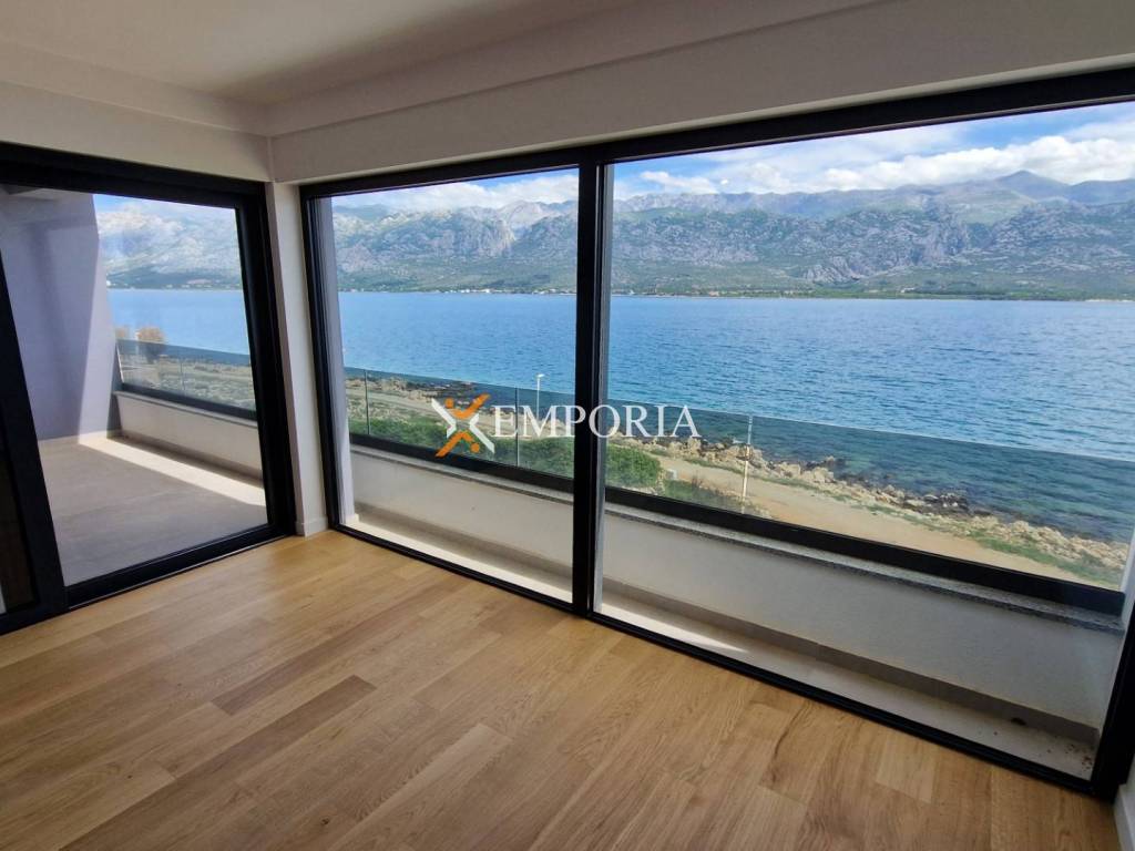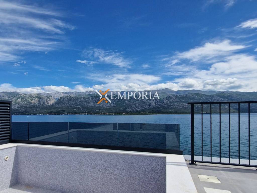 For sale is a beautiful penthouse apartment with roof terrace and swimming pool in the first row to the sea in Vinjerac. The view of the sea and Velebit – mountain is unique.
