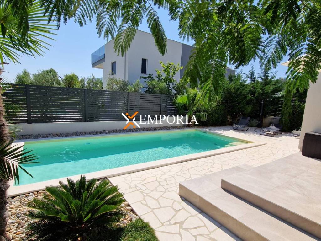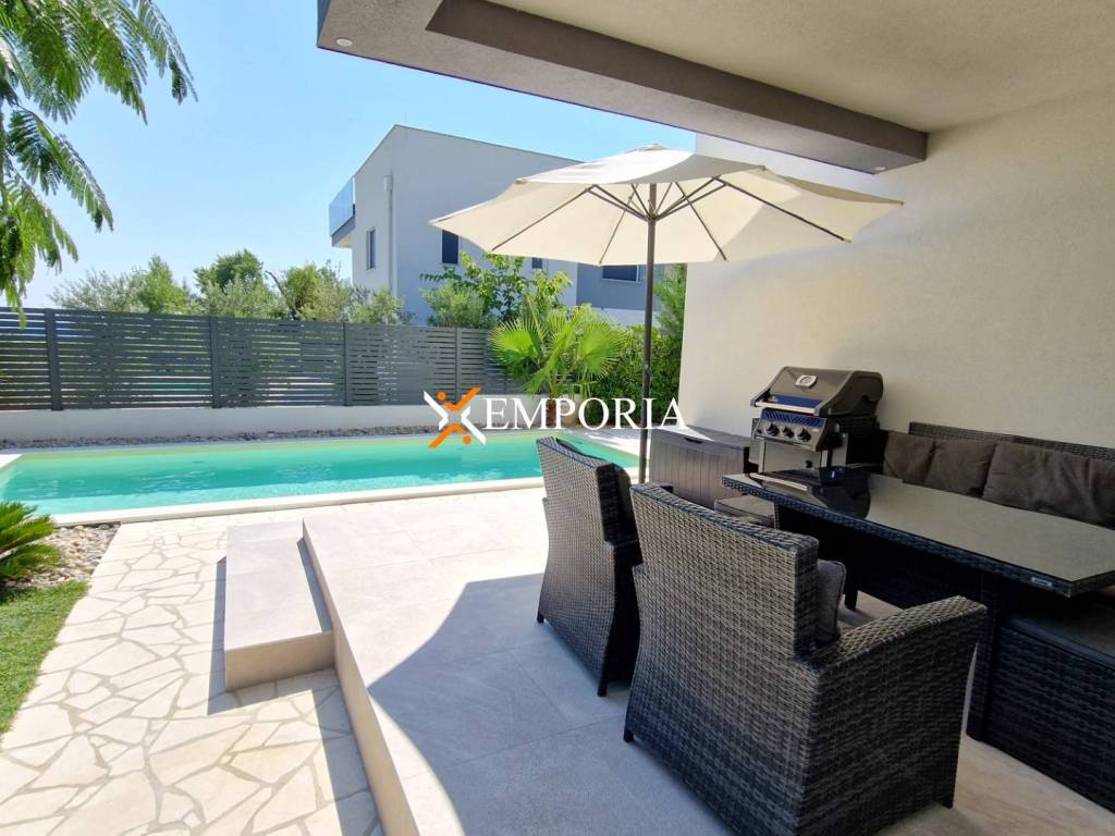 Luxury villa with pool in Privlaka for sale. It is in a beautiful location just 100 m from the sea. The villa offers a very nice view of the sea. The villa is fully furnished and equipped.
